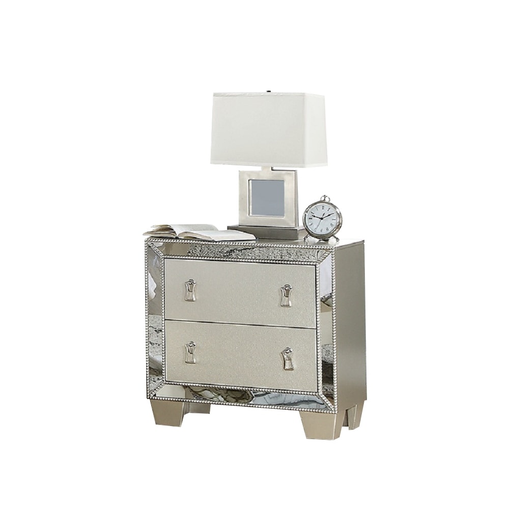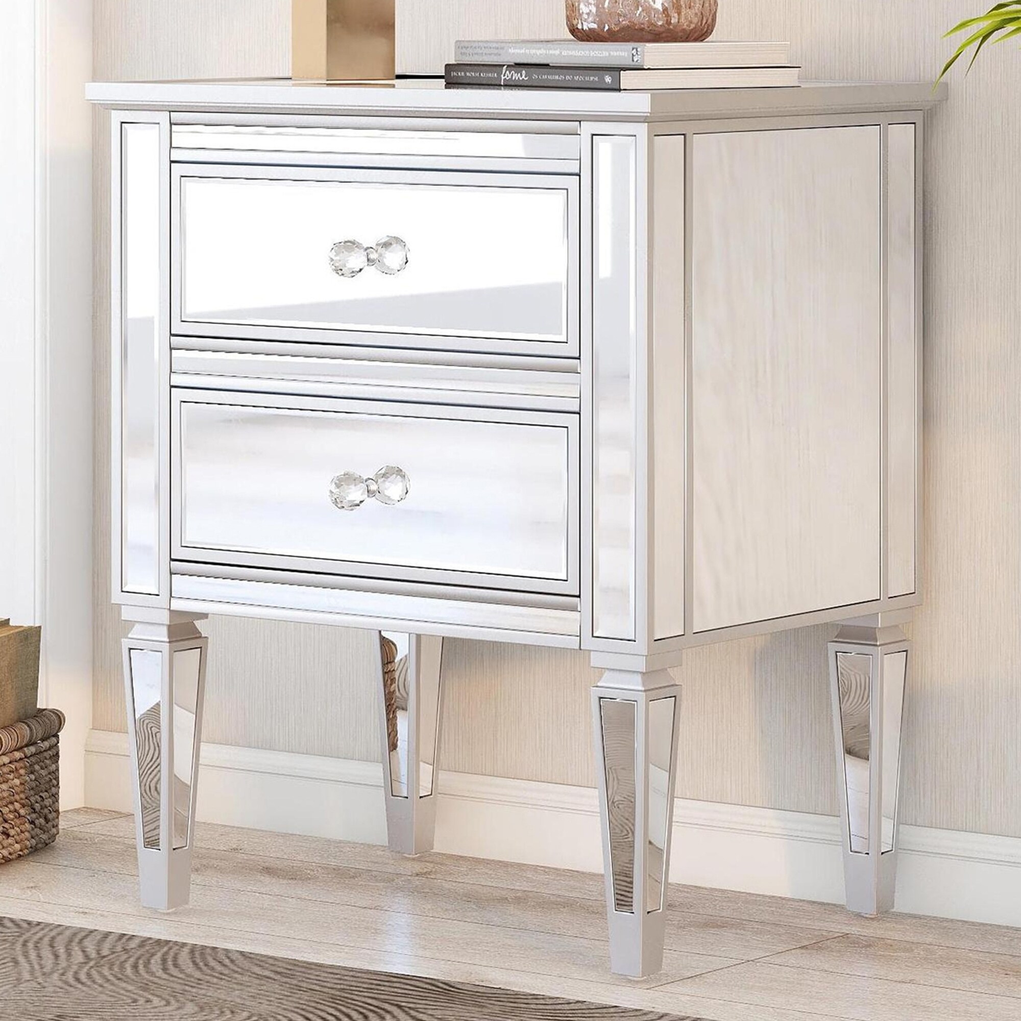 Elegant Mirrored Nightstand with 2 Drawers, Modern Silver Finished End Table Side Table for Living Room Bedroom