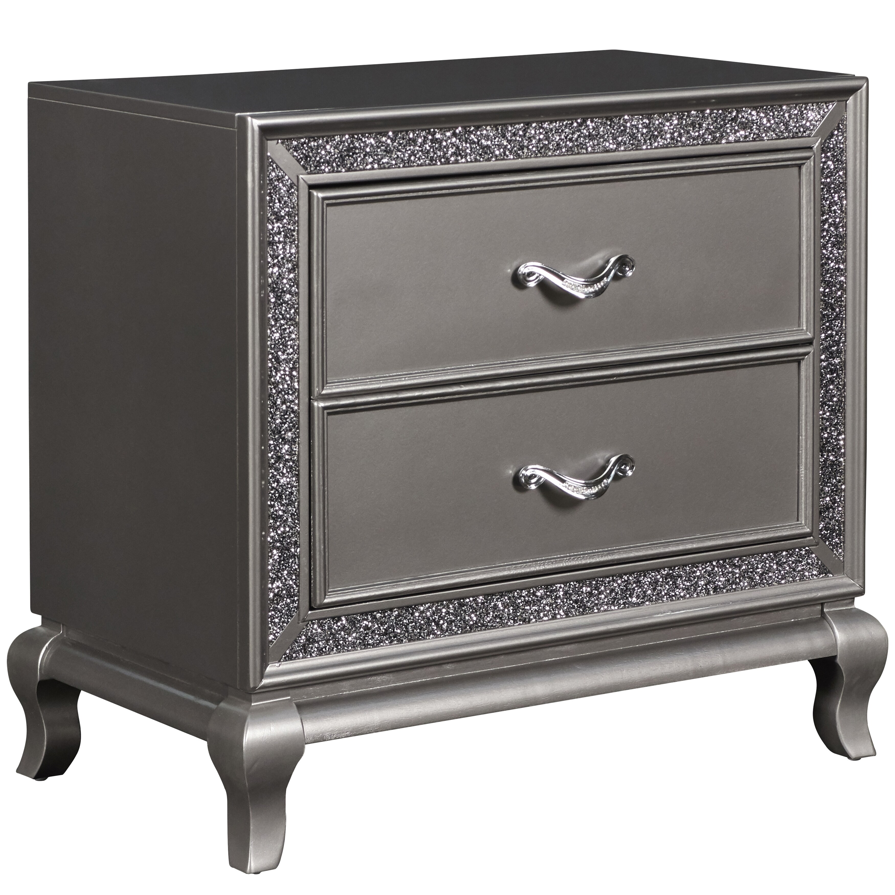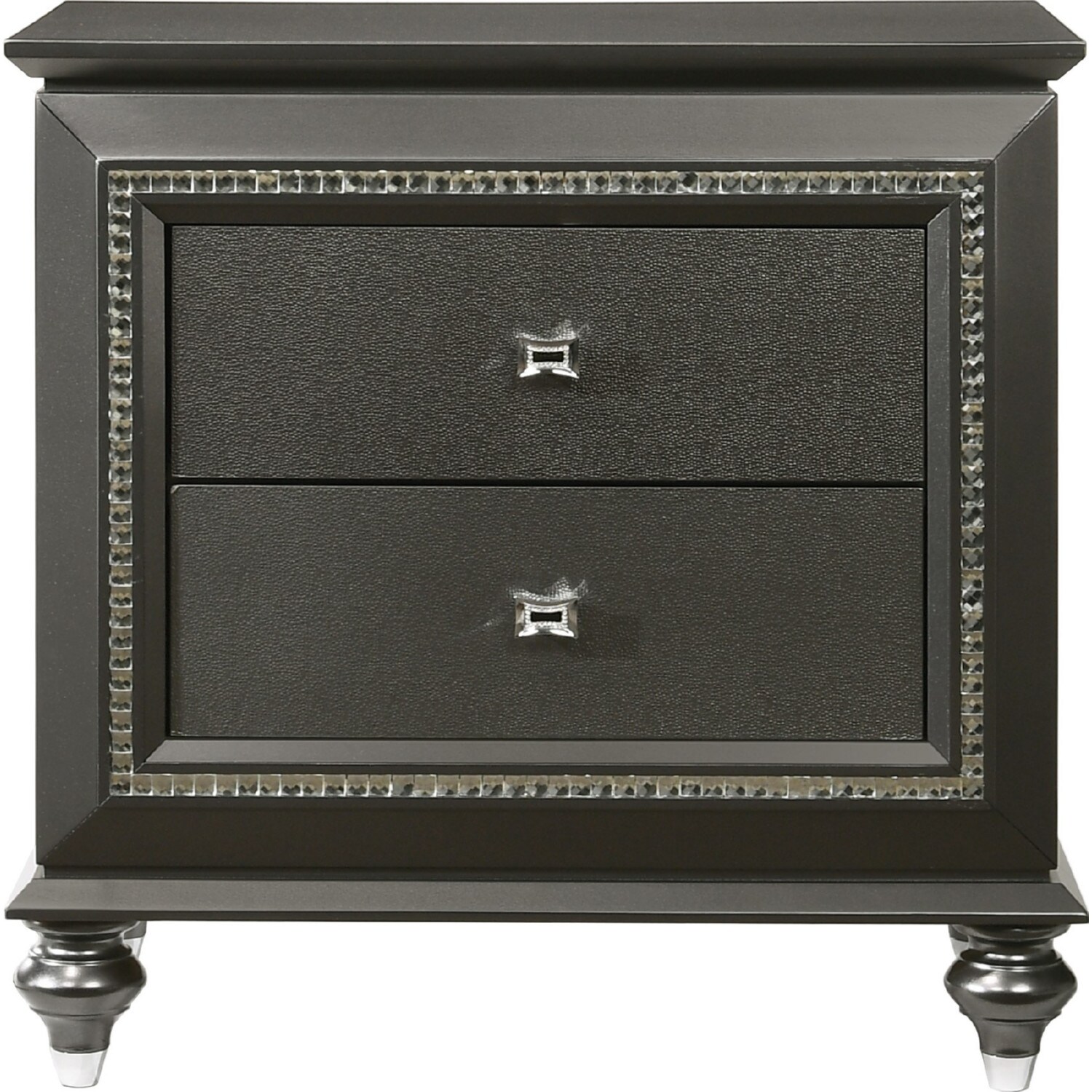 2 Drawers Wood Nightstand in Metallic Gray Finish