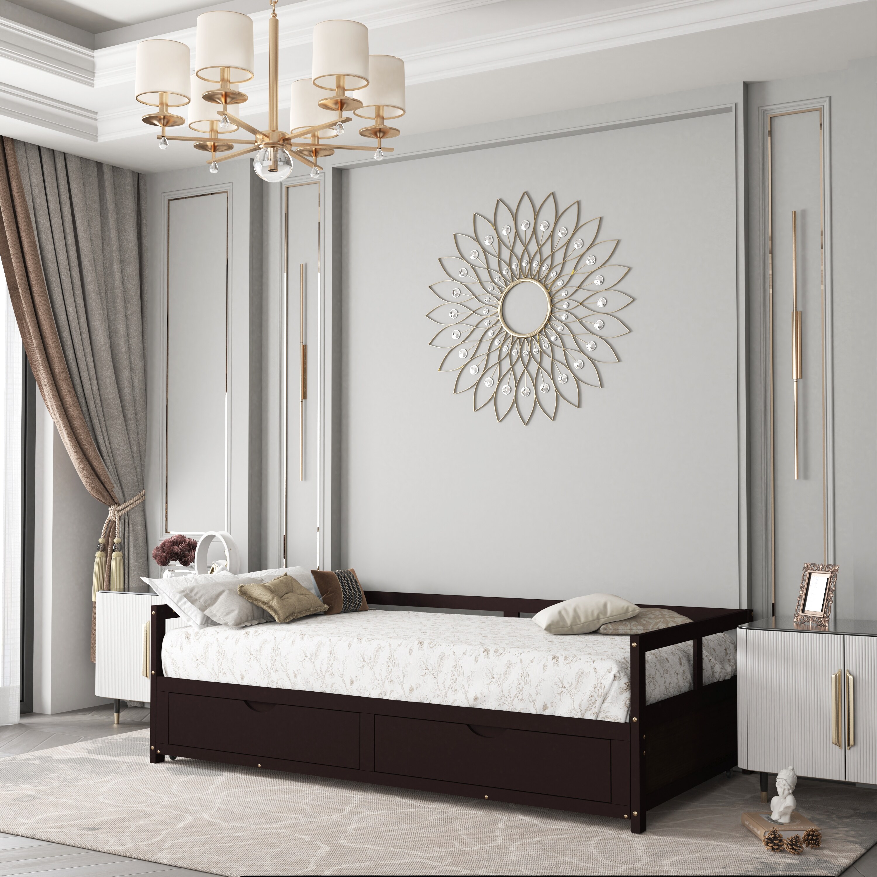 Twin Wooden Daybed with 2 drawers, Sofa Bed for Bedroom Living Room