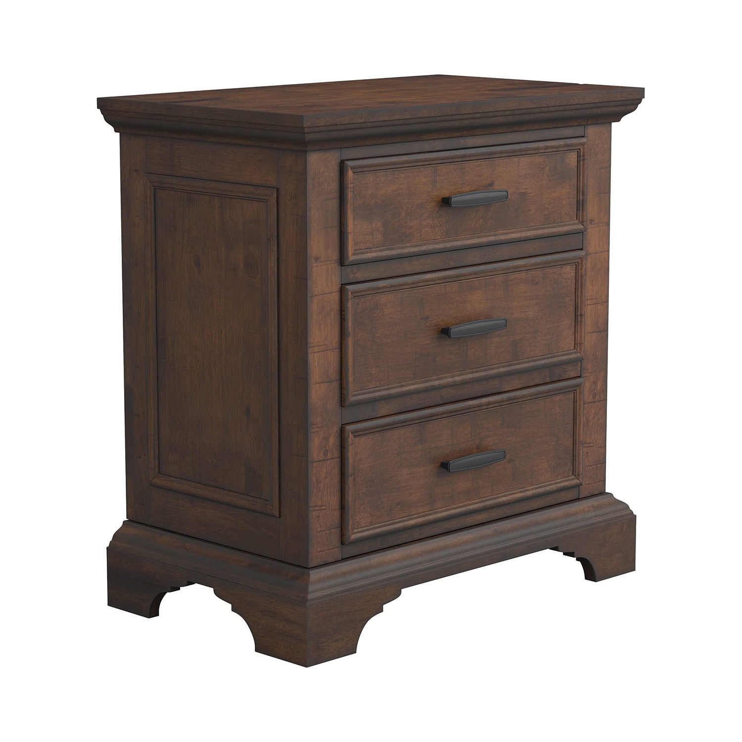 Wood Nightstand with 3 Drawers in Vintage Bourbon