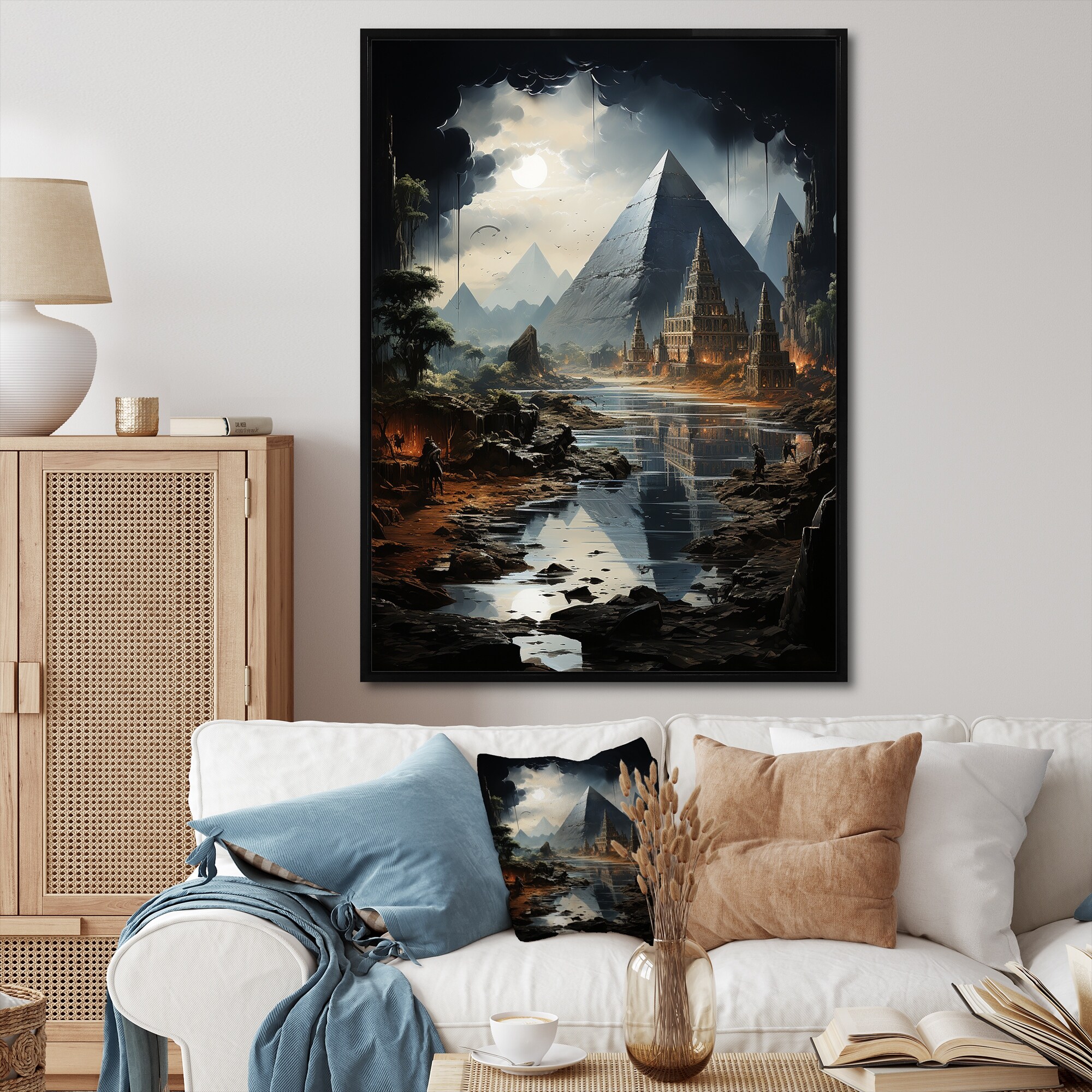 Designart "Pyramid Ancient Echoes II" Egypt Framed Canvas Wall Art