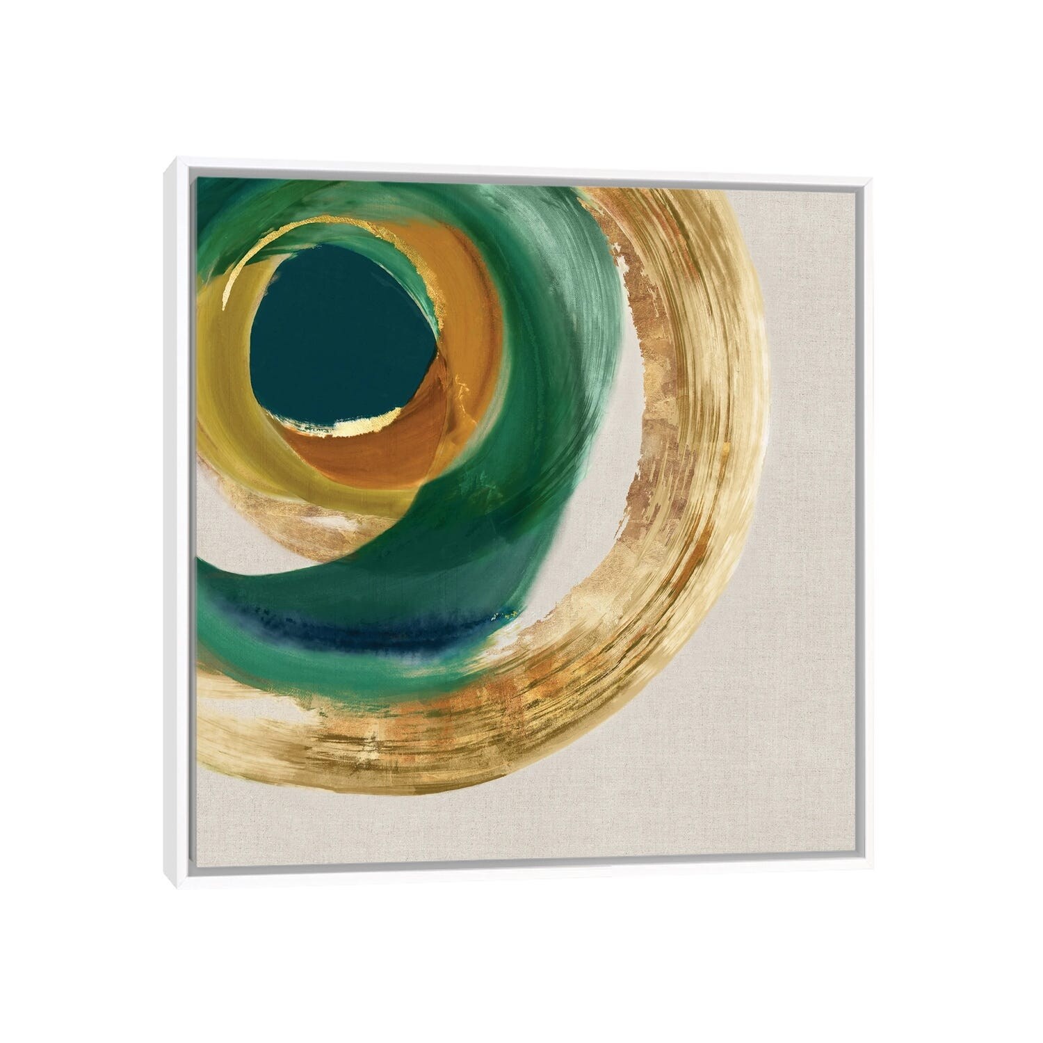 iCanvas "Green Metallic Circle I" by Emma Peal Framed Canvas Print