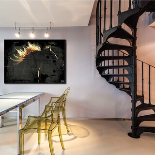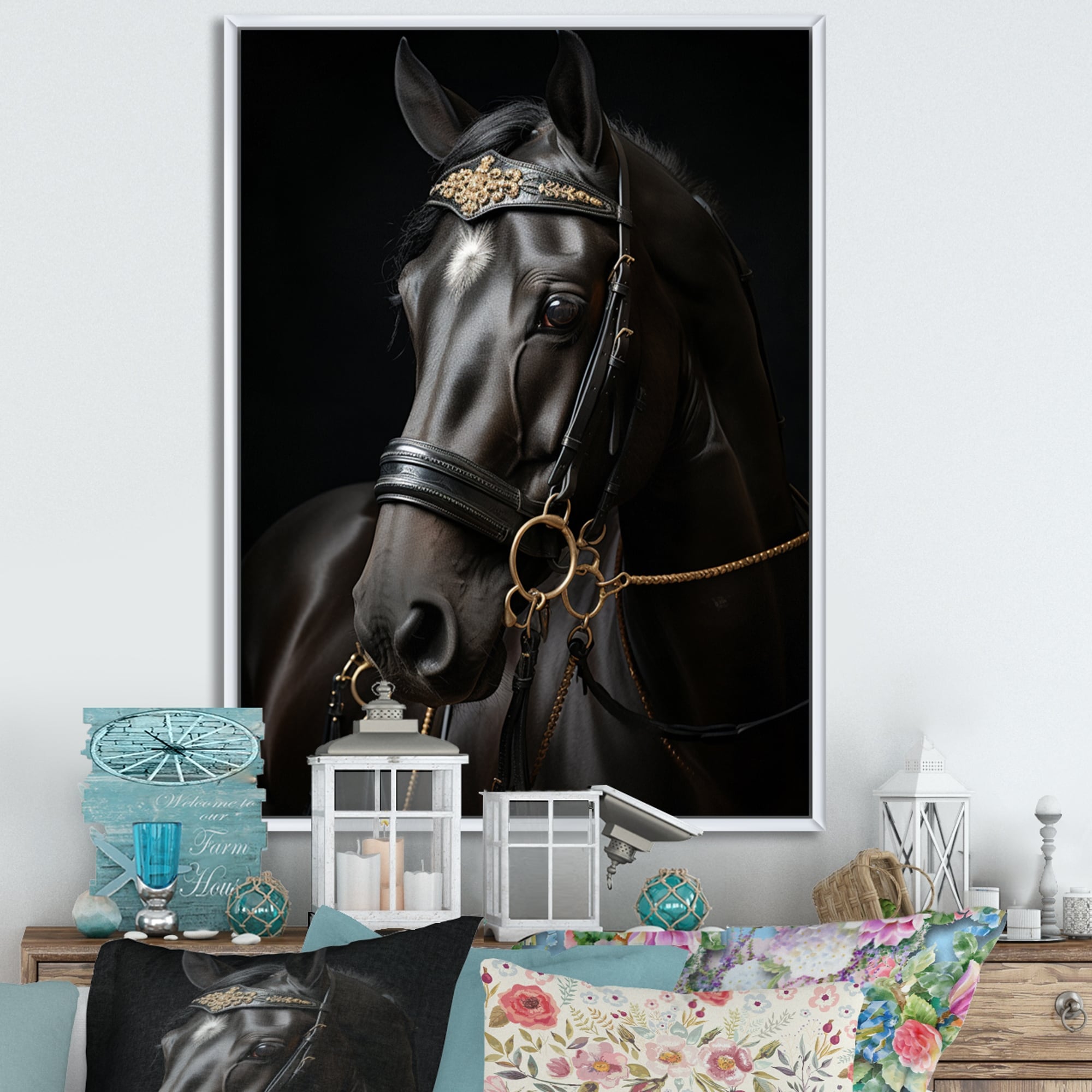 Designart "Black Gold Horse Golden Equestrian I" Animals Horse Framed Canvas Print