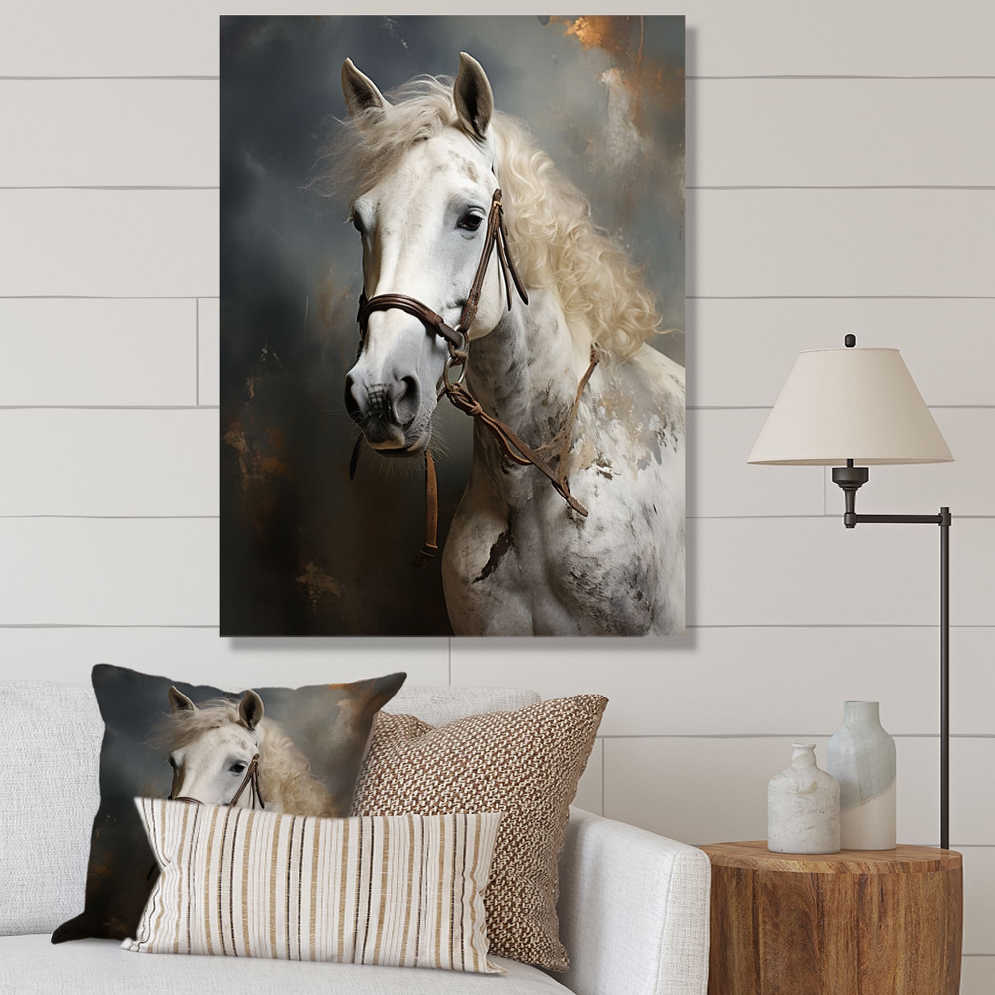 Designart "White Horse Equestrian Duality III" Animals Horse Canvas Print