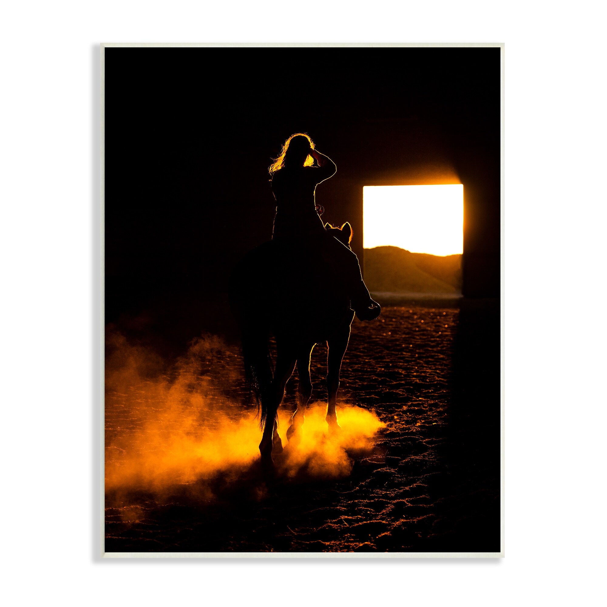 Stupell Industries Equestrian Horse Jockey Silhouette Vivid Light Flare Wood Wall Art, Design by Steve Smith - Orange