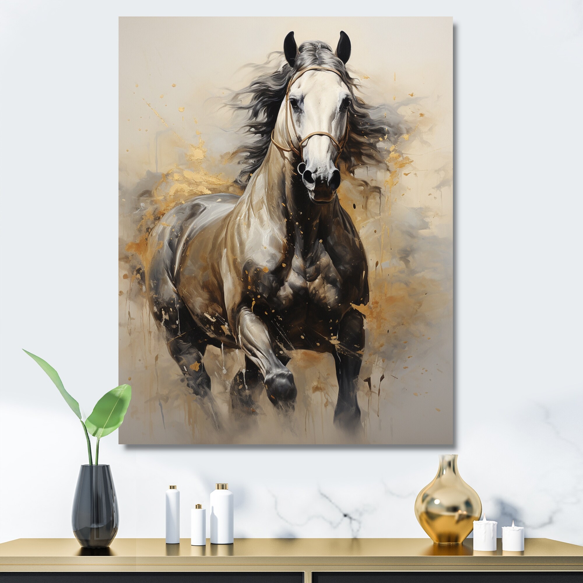 Designart "Beige Horse Golden Equestrian Pointillism" Animals Horse Wall Decor