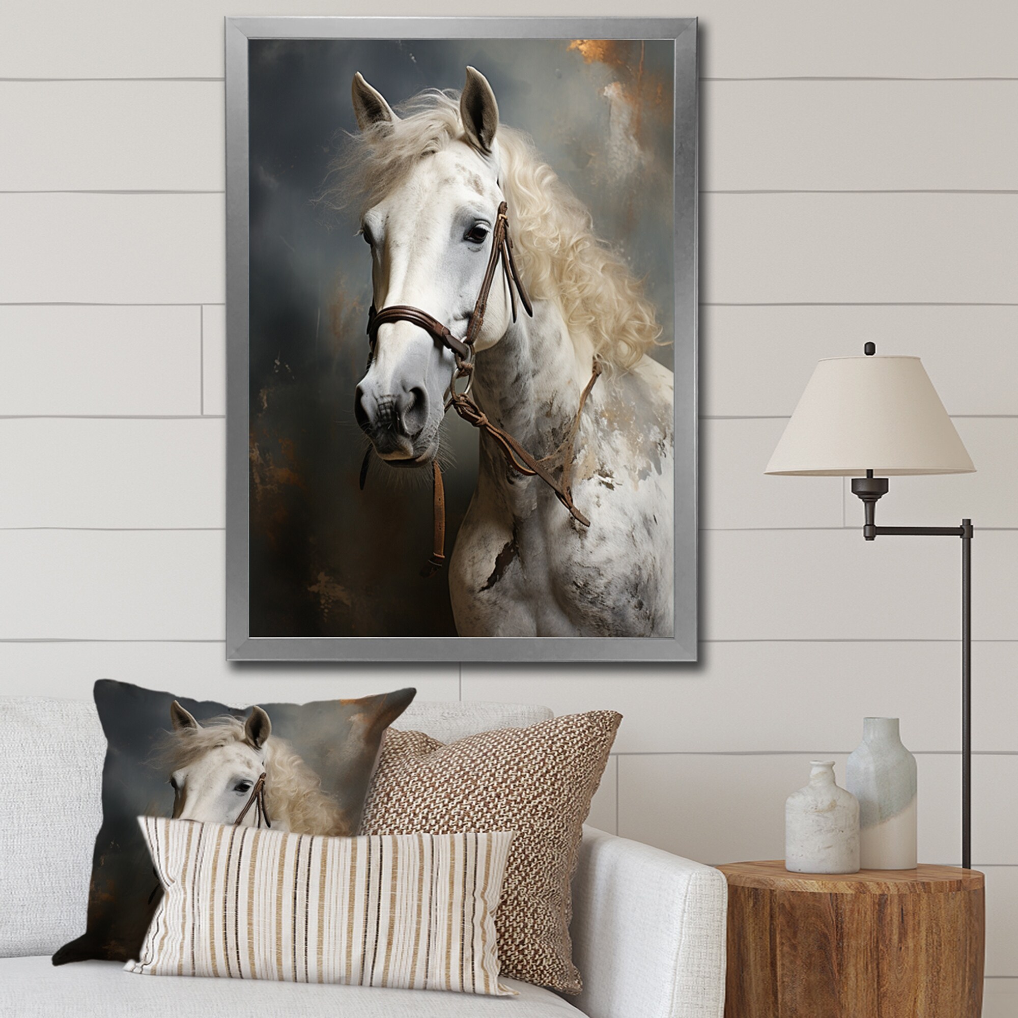 Designart "White Horse Equestrian Duality III" Animals Horse Framed Canvas Prints