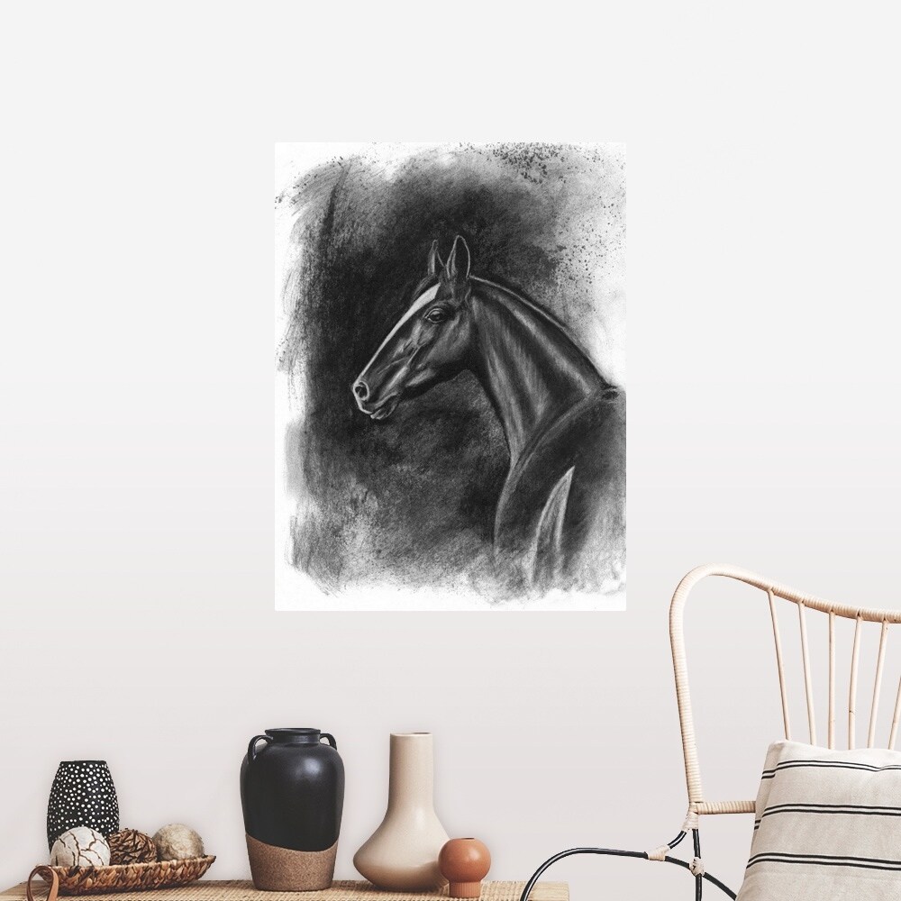 Stupell Strong Equestrian Portrait Minimal Black Horse Framed Wall Art