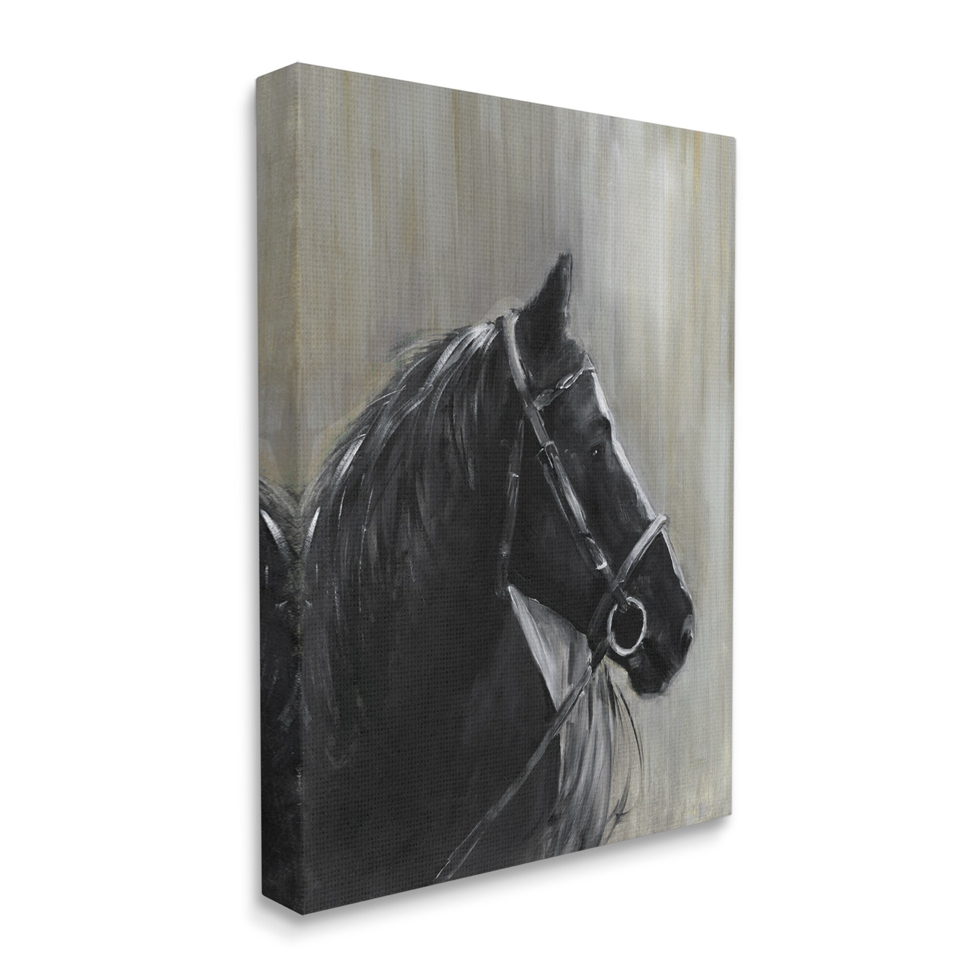 Stupell Industries Black Horse in Bridle Solemn Equestrian Portrait Canvas Wall Art