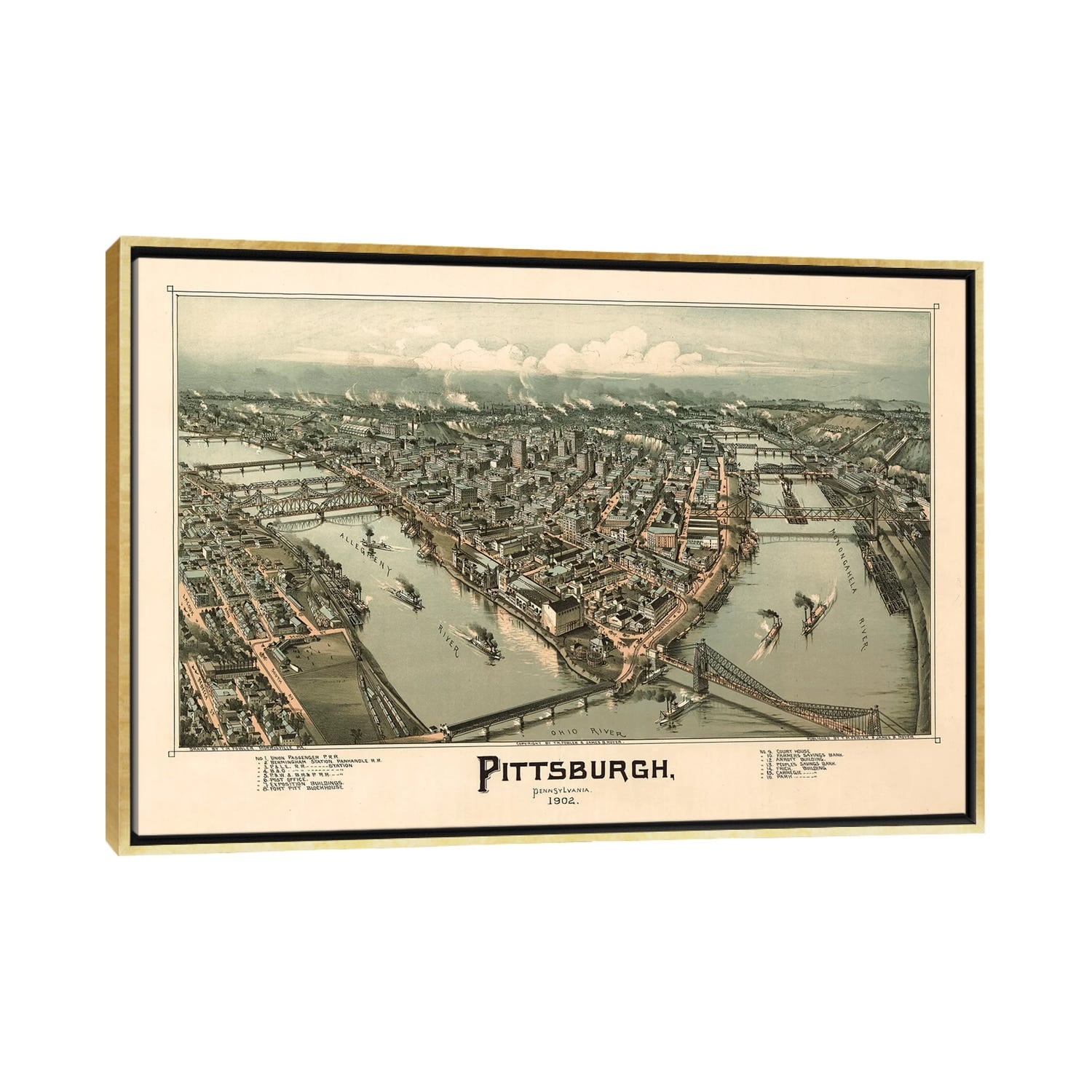 iCanvas "Pittsburgh, Bird's Eye View, 1902" by Vintage Apple Collection Framed Canvas Print