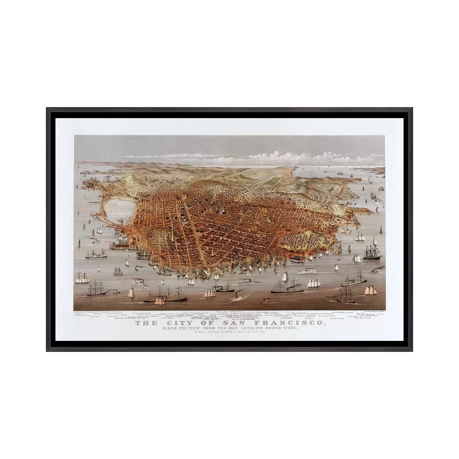 iCanvas "The City of San Francisco, Bird's Eye View From the Bay Looking South-West, c.1878" by Currier & Ives Framed