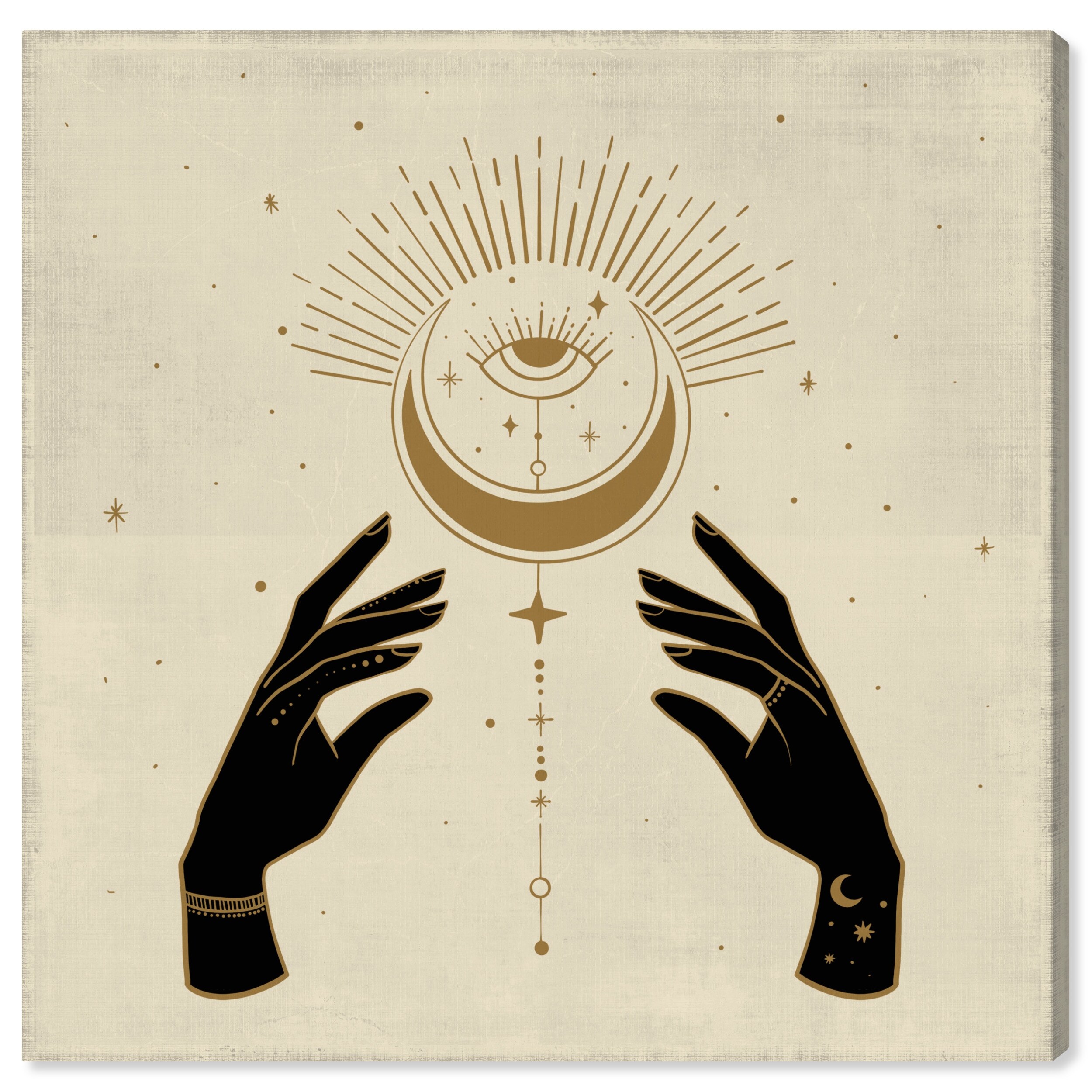 Celestial Hands 1, Boho Mystical Eye Bohemian Gold Canvas Wall Art Print for Bedroom