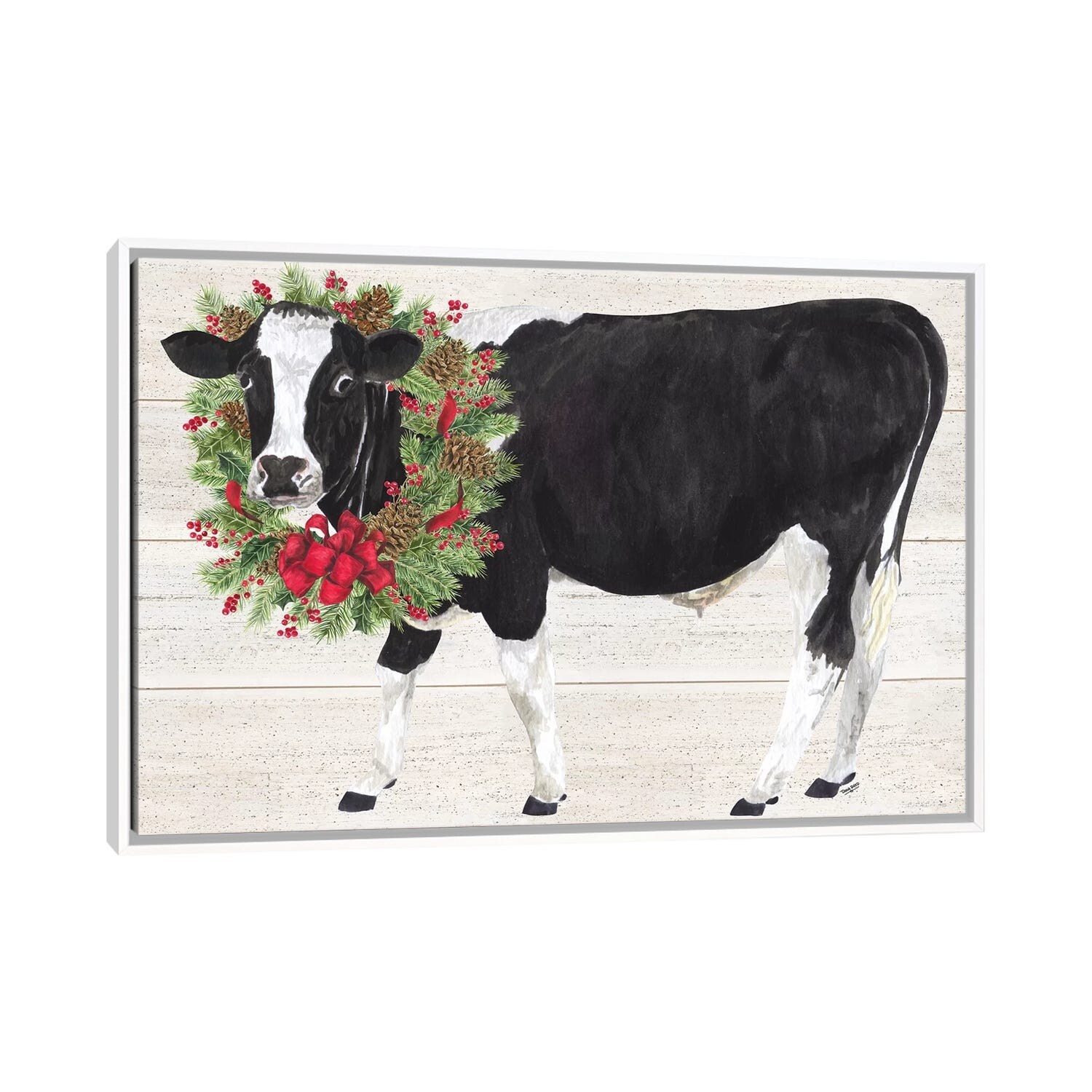 iCanvas "Christmas On the Farm III - Cow with Wreath" by Tara Reed Framed