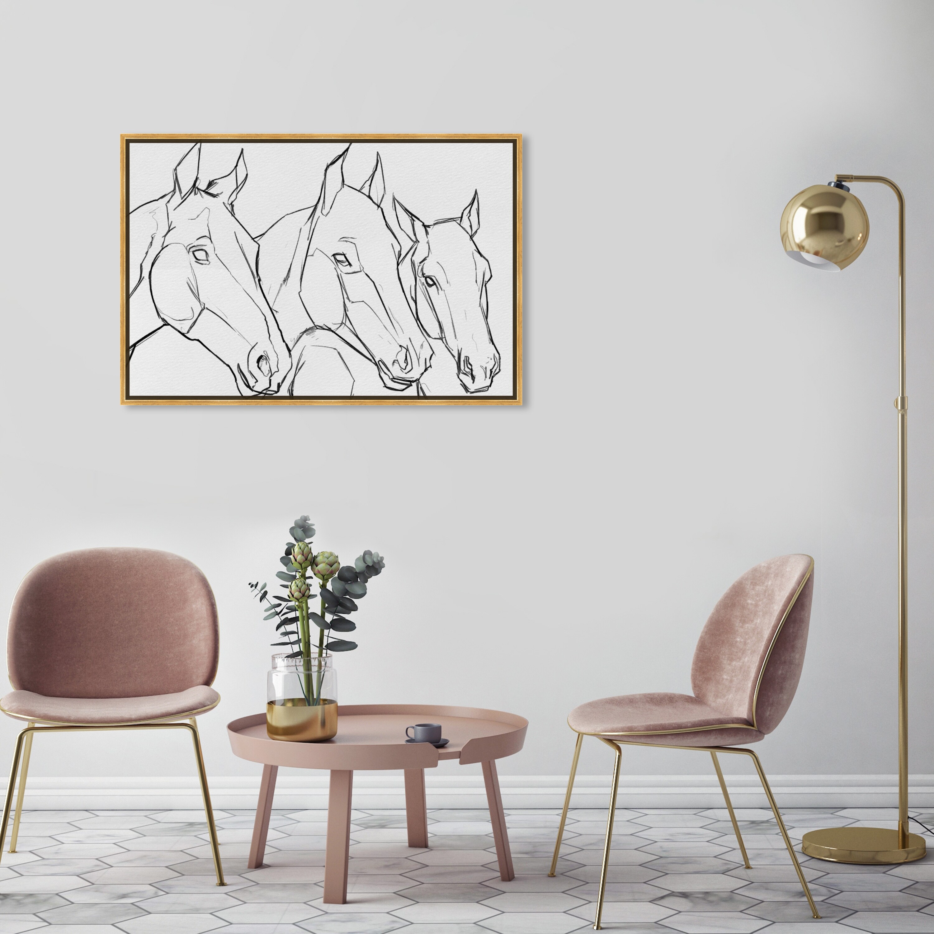 Oliver Gal 'Stallion sketch II' Animals Wall Art Framed Canvas Print Farm Animals - Gray, Black