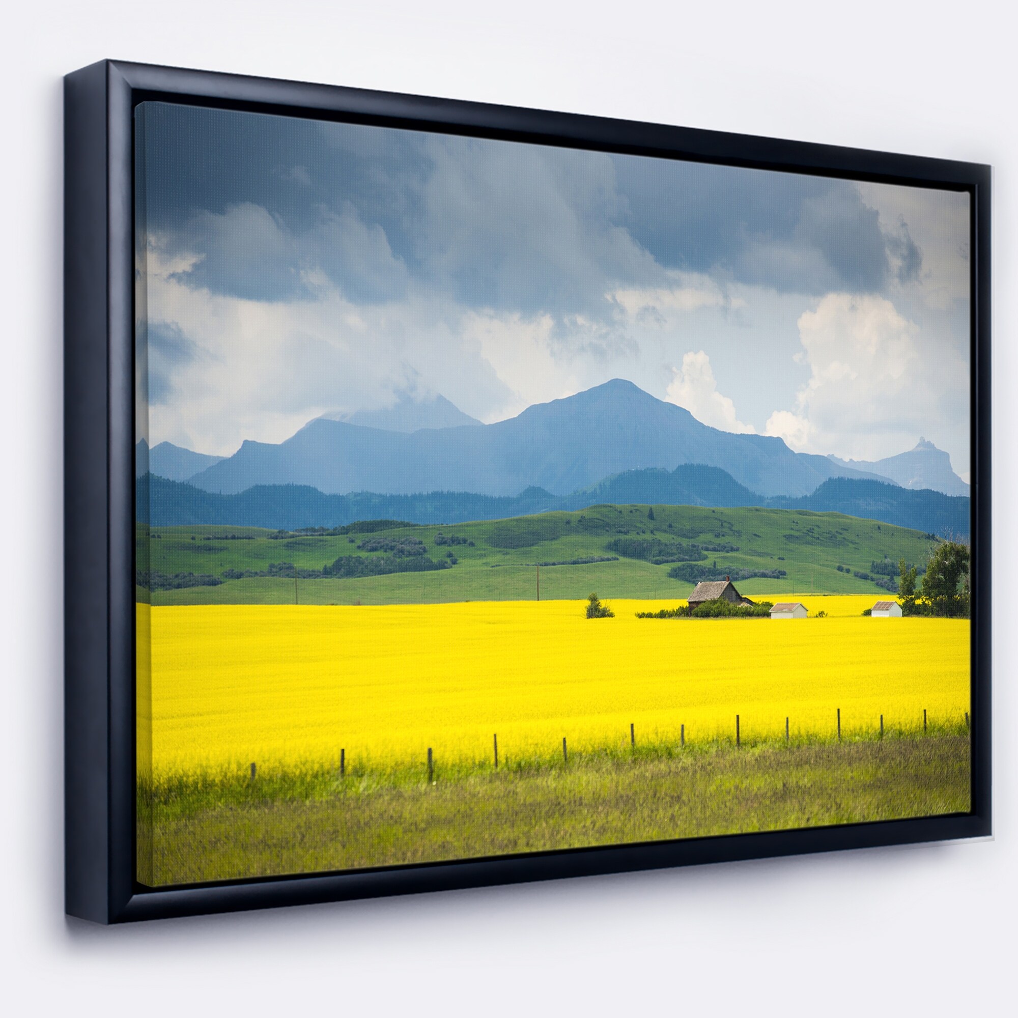 Designart "Farm House in Field of Canola" Landscape Framed Canvas Art Print