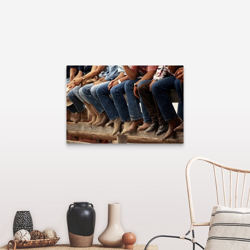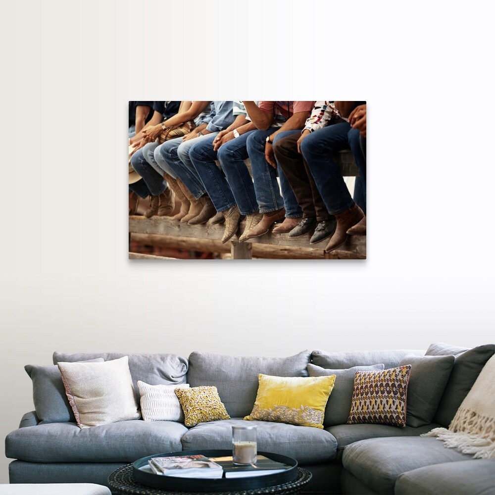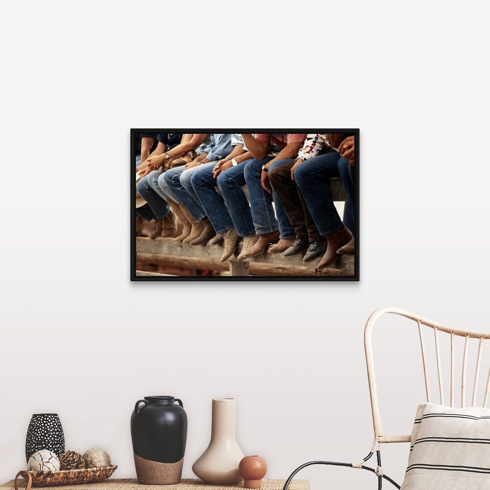 "Cowboys sitting on fence" Black Float Frame Canvas Art