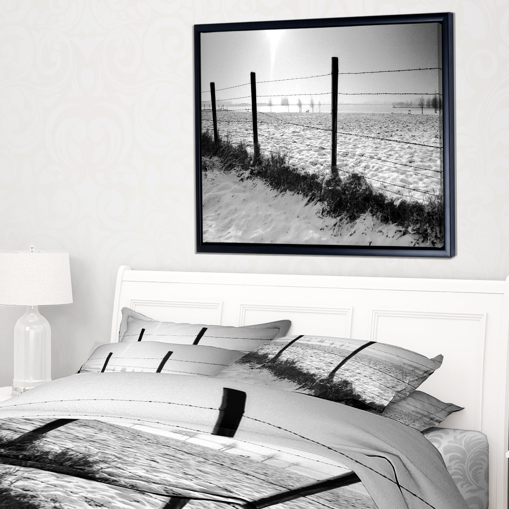 Designart "Landscape in Snow with Fence" Oversized Beach Framed Canvas Artwork Print