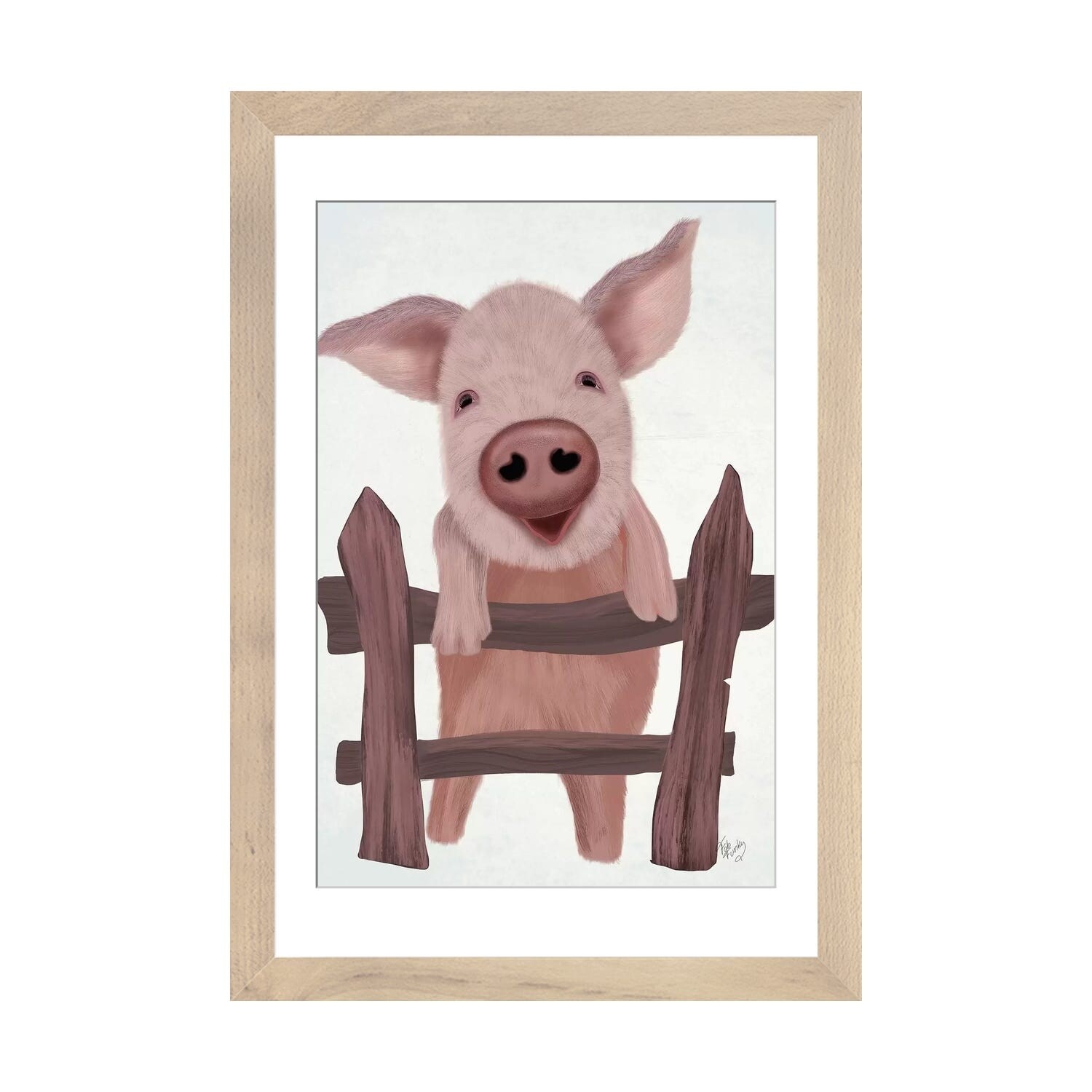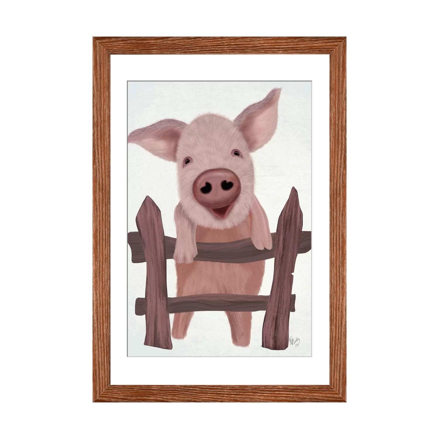 iCanvas "Pig On Fence Book Print" by Fab Funky Framed