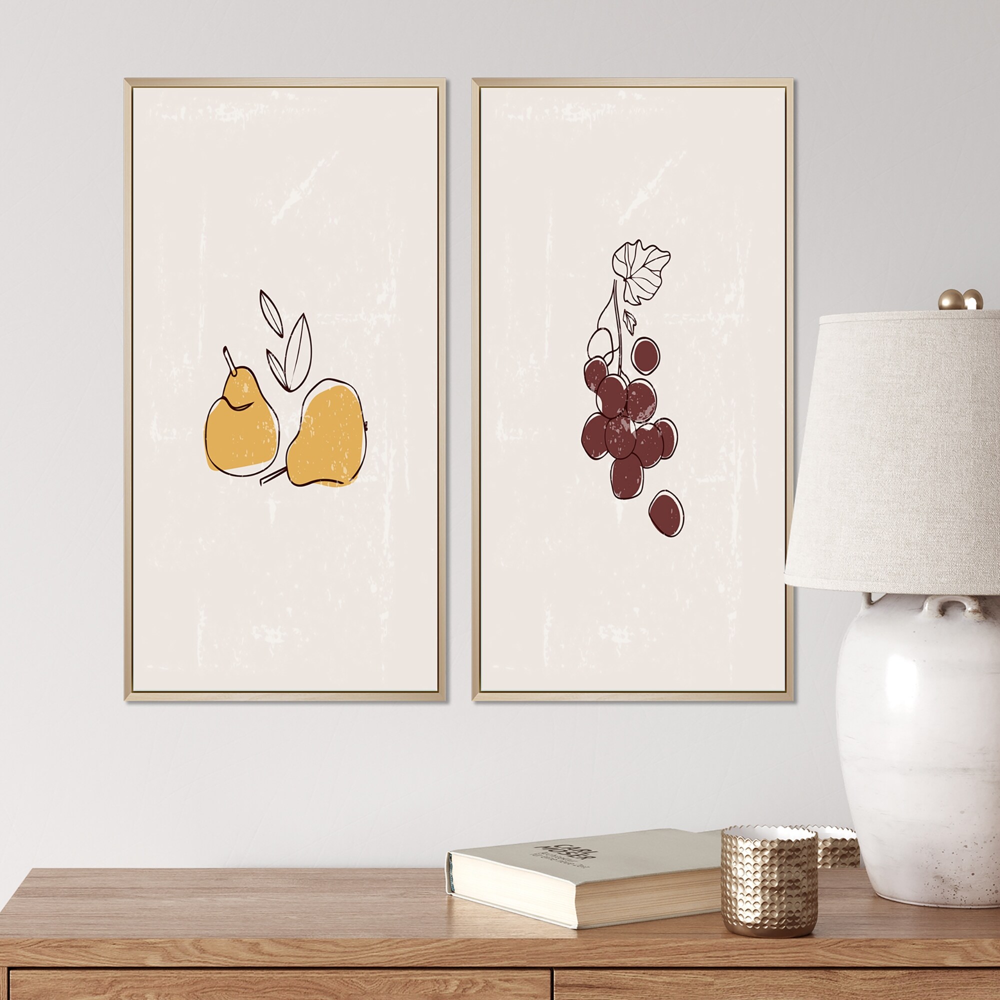 Designart "Vintage Fruit Illustrations I" Cottage Framed Art Set of 2 Pieces