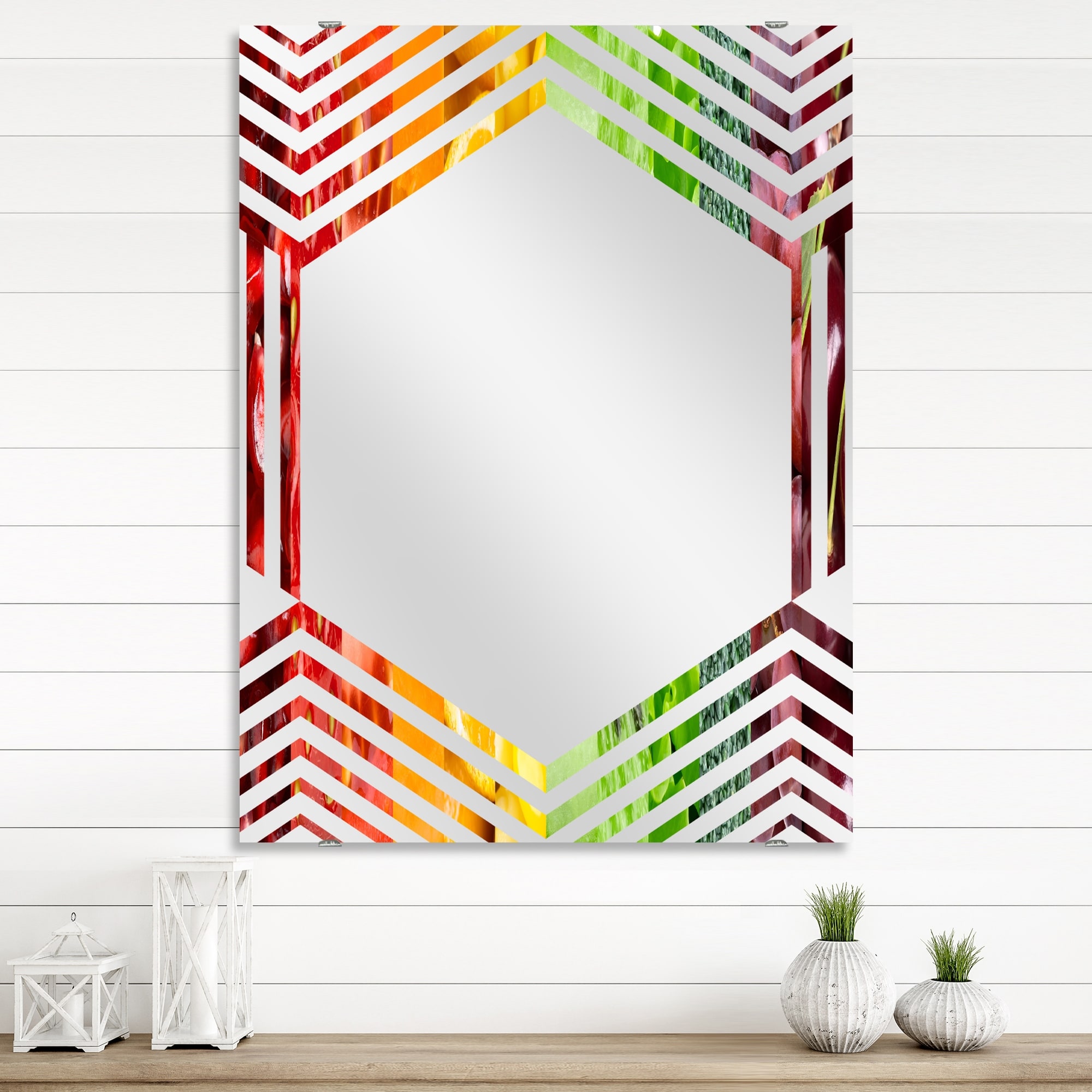 Designart 'Fruits Berries and Vegie Collage' Floral Printed Wall Mirror