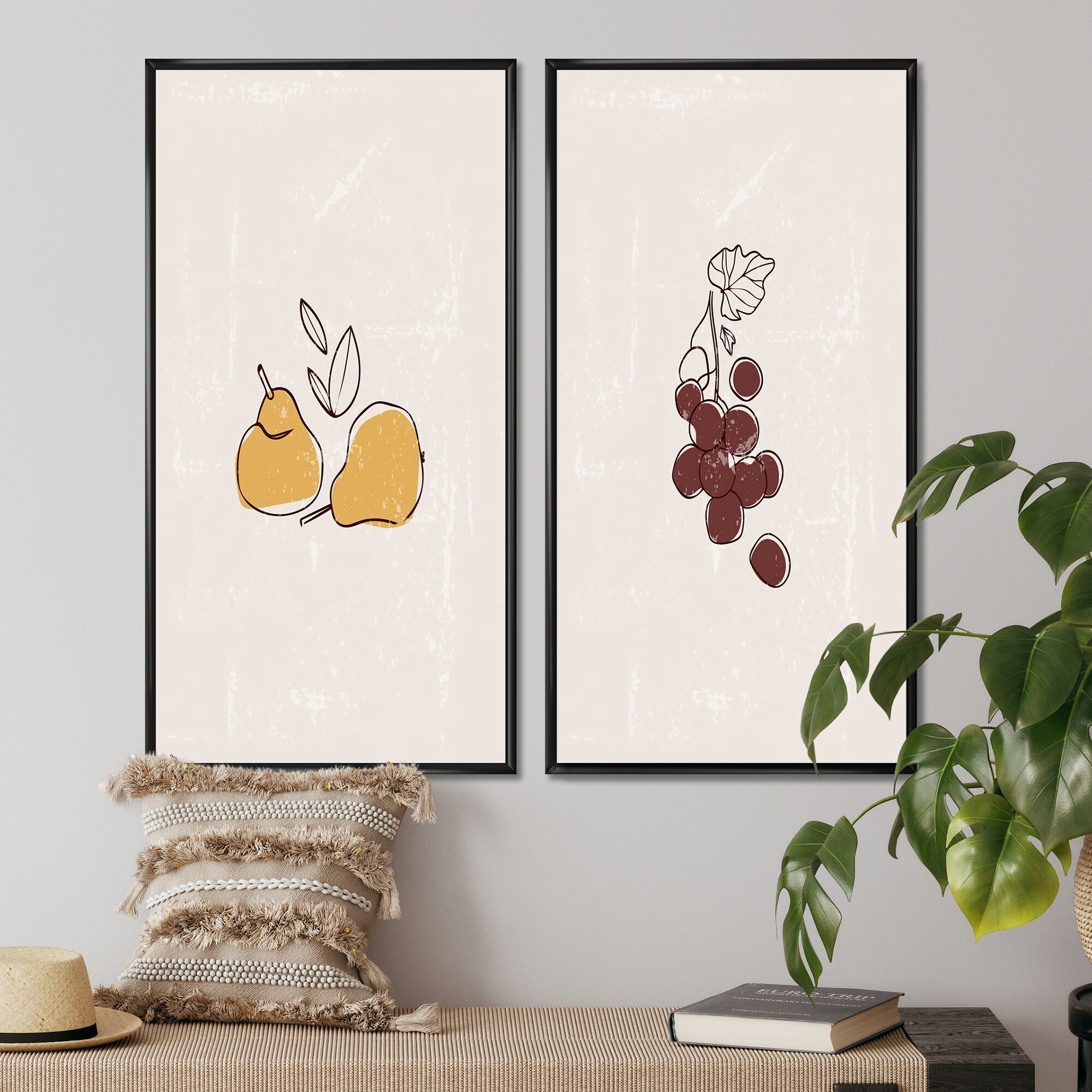 Designart "Organic Vintage Hipster Fruits III" Cottage Framed Art Set of 2 Pieces