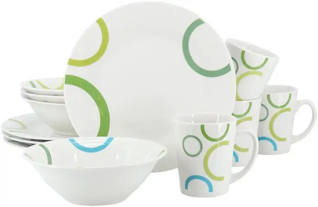 Gibson Home Confetti Band 12 Piece Mix & Match Dinnerware Set