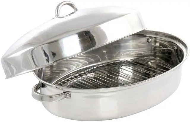 Gibson Home Hutchinson 18 Inch Oval Stainless Steel Roaster with Rack