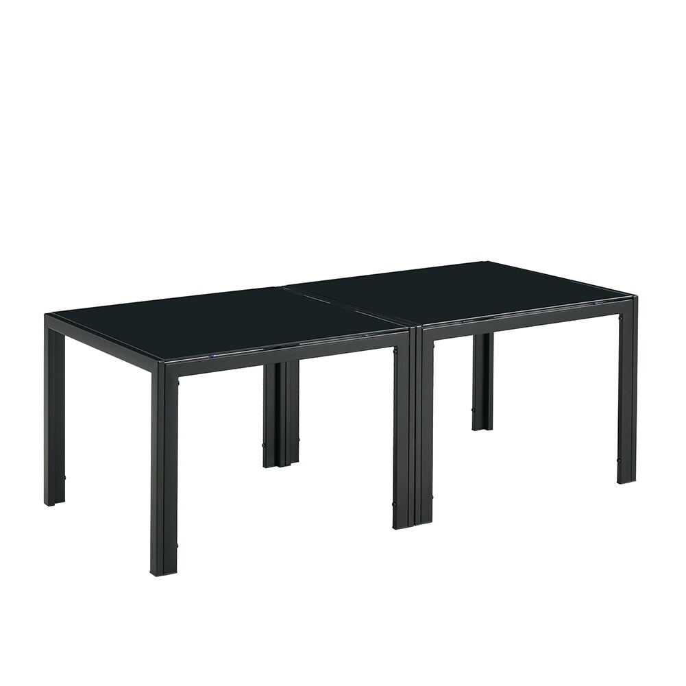 2 Piece Modern Square Coffee Table with Tempered Glass Tabletop