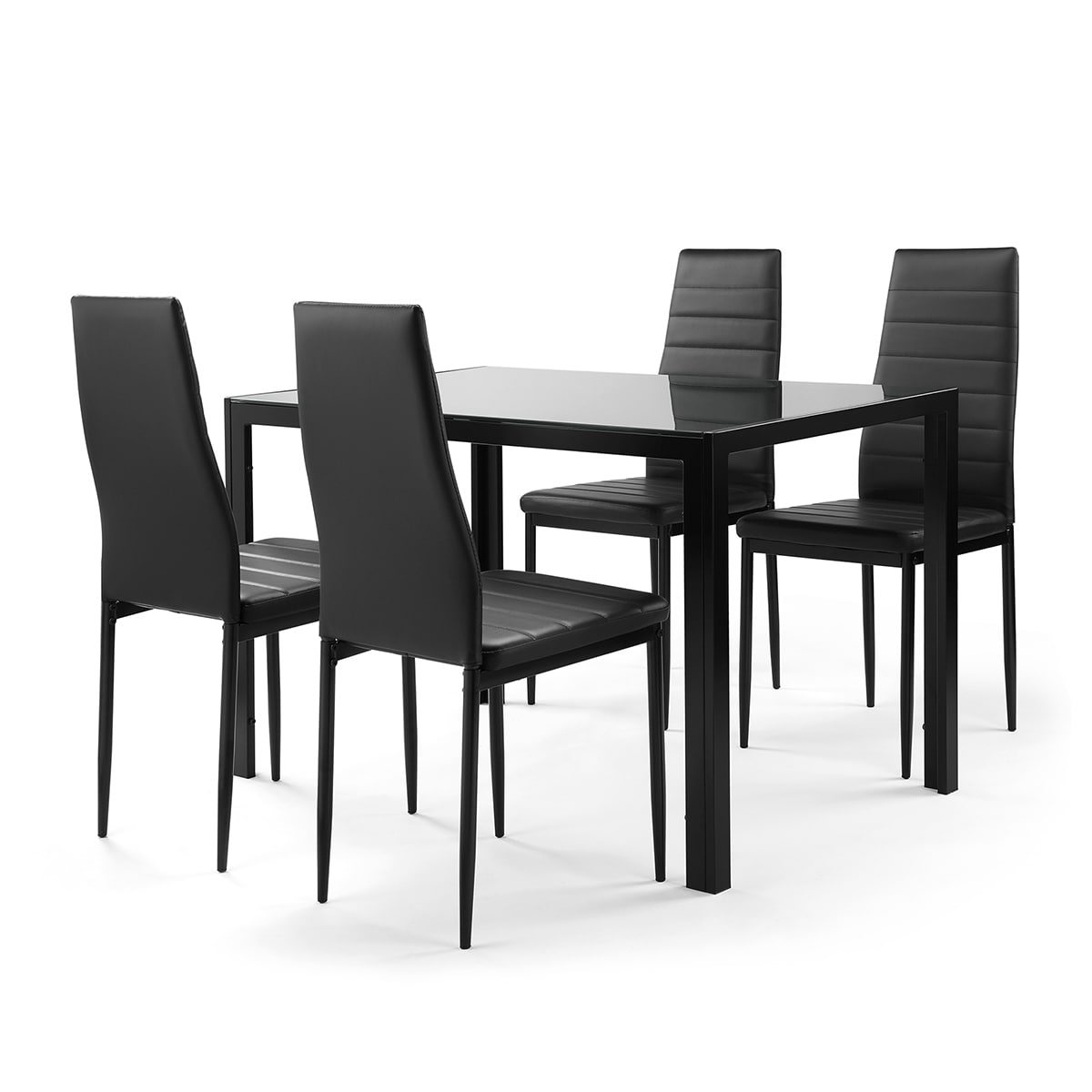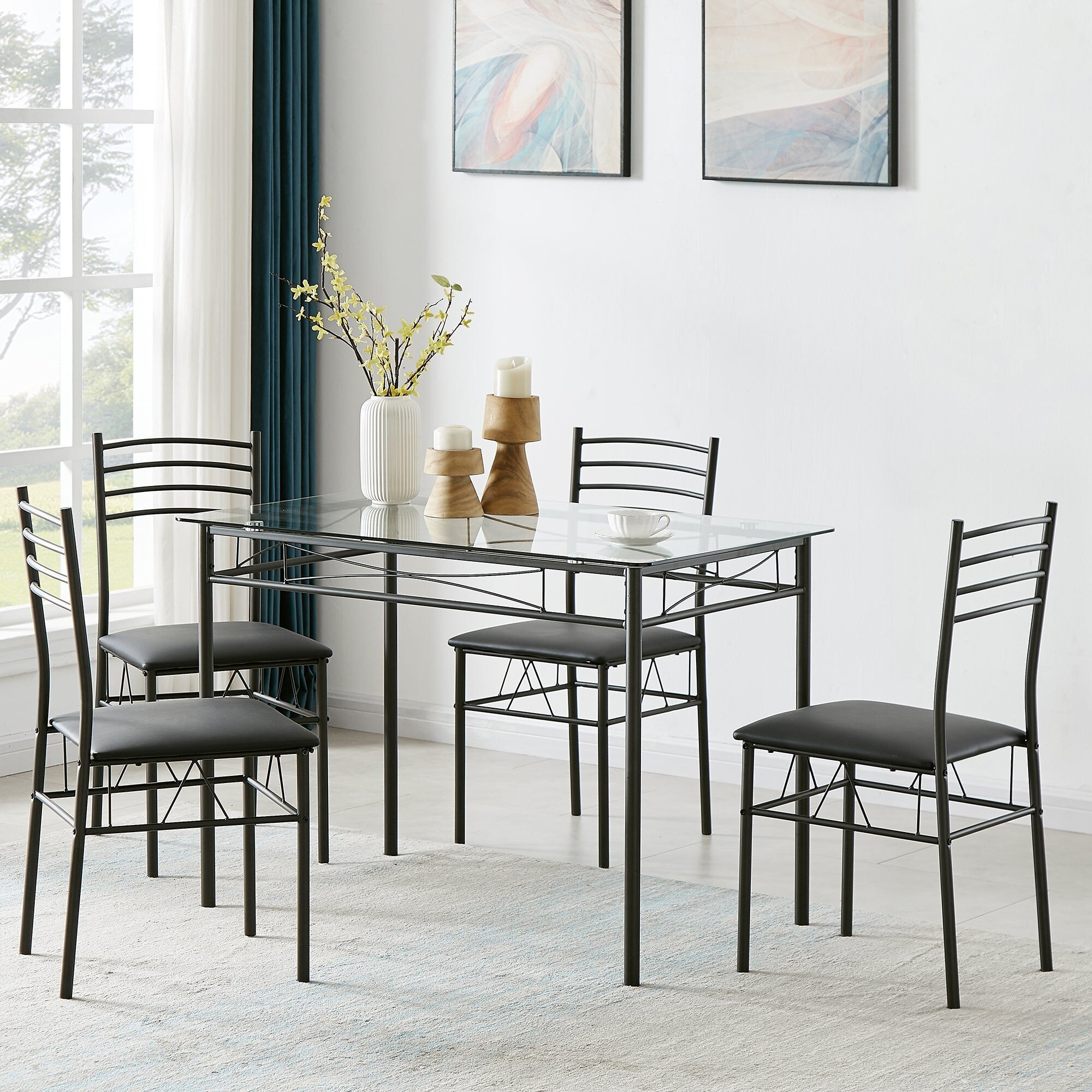 5 Pieces Dining Table Set for 4,Kitchen Room Tempered Glass Dining Table ,4 Faux Leather Chairs ,Black