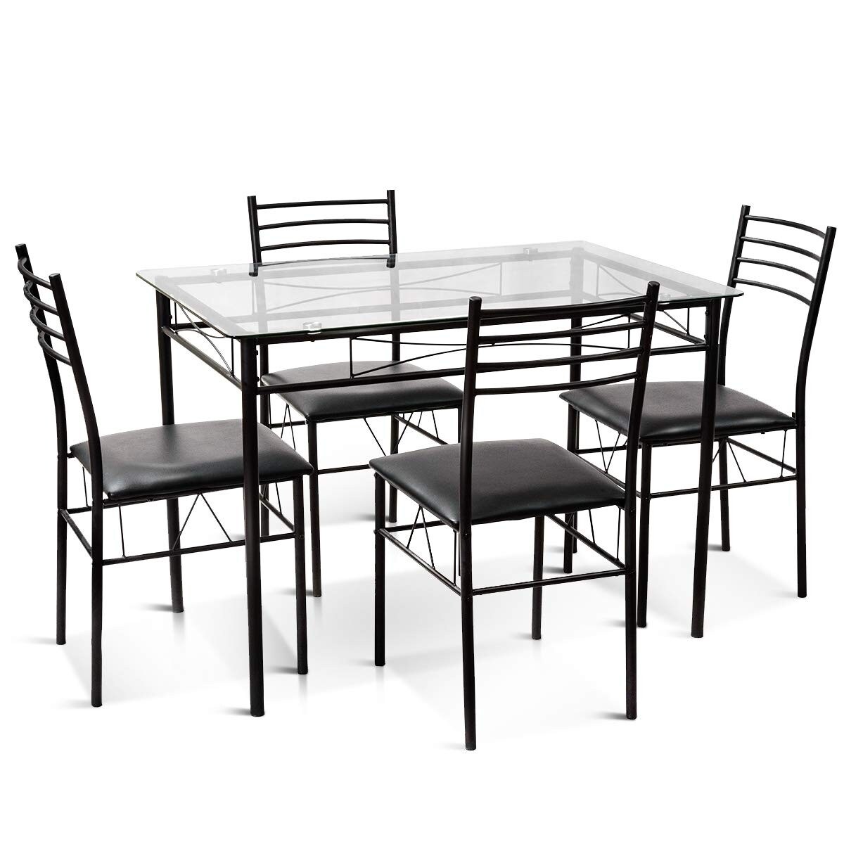 Javlergo 5 Piece Dining Table Set Tempered Glass Table and 4 Chairs for Kitchen