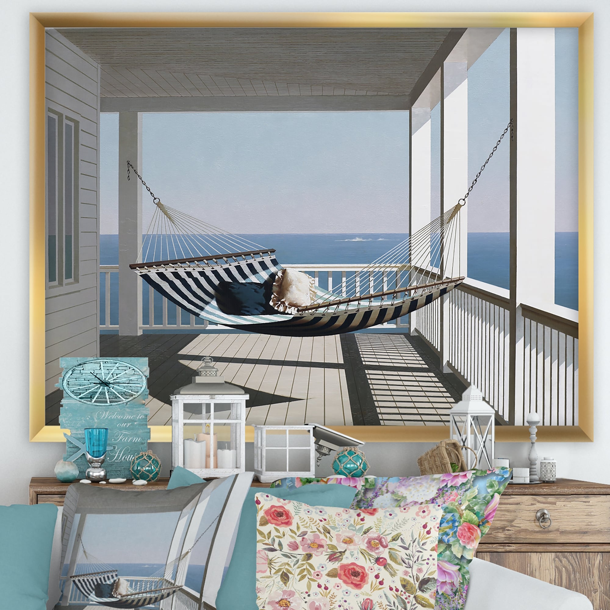 Designart "Hammock & Pillows" Nautical & Coastal Framed Art Print