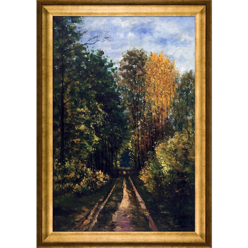 La Pastiche Claude Monet 'Wooded Path' Hand Painted Framed Canvas Art