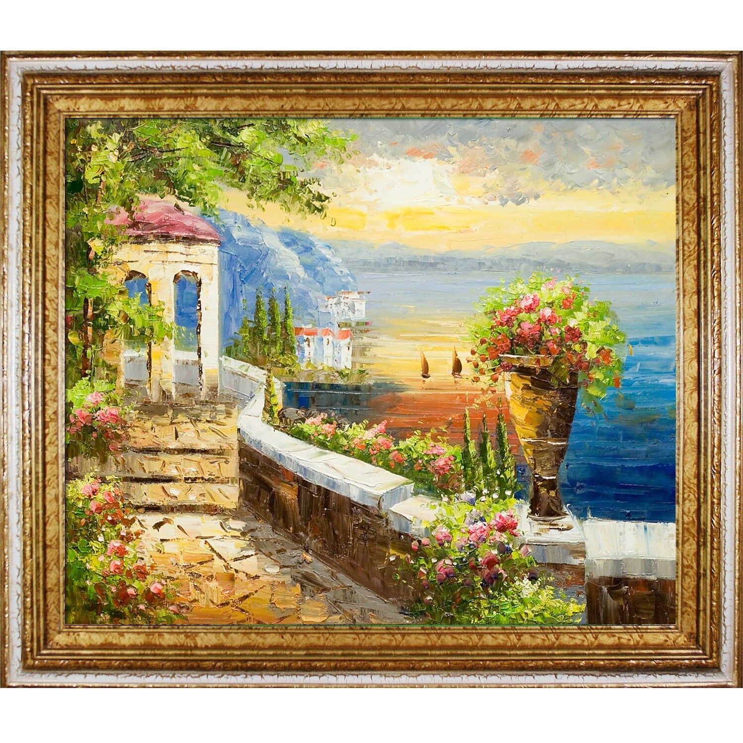 La Pastiche Italy at Dusk' Hand Painted Framed Canvas Art
