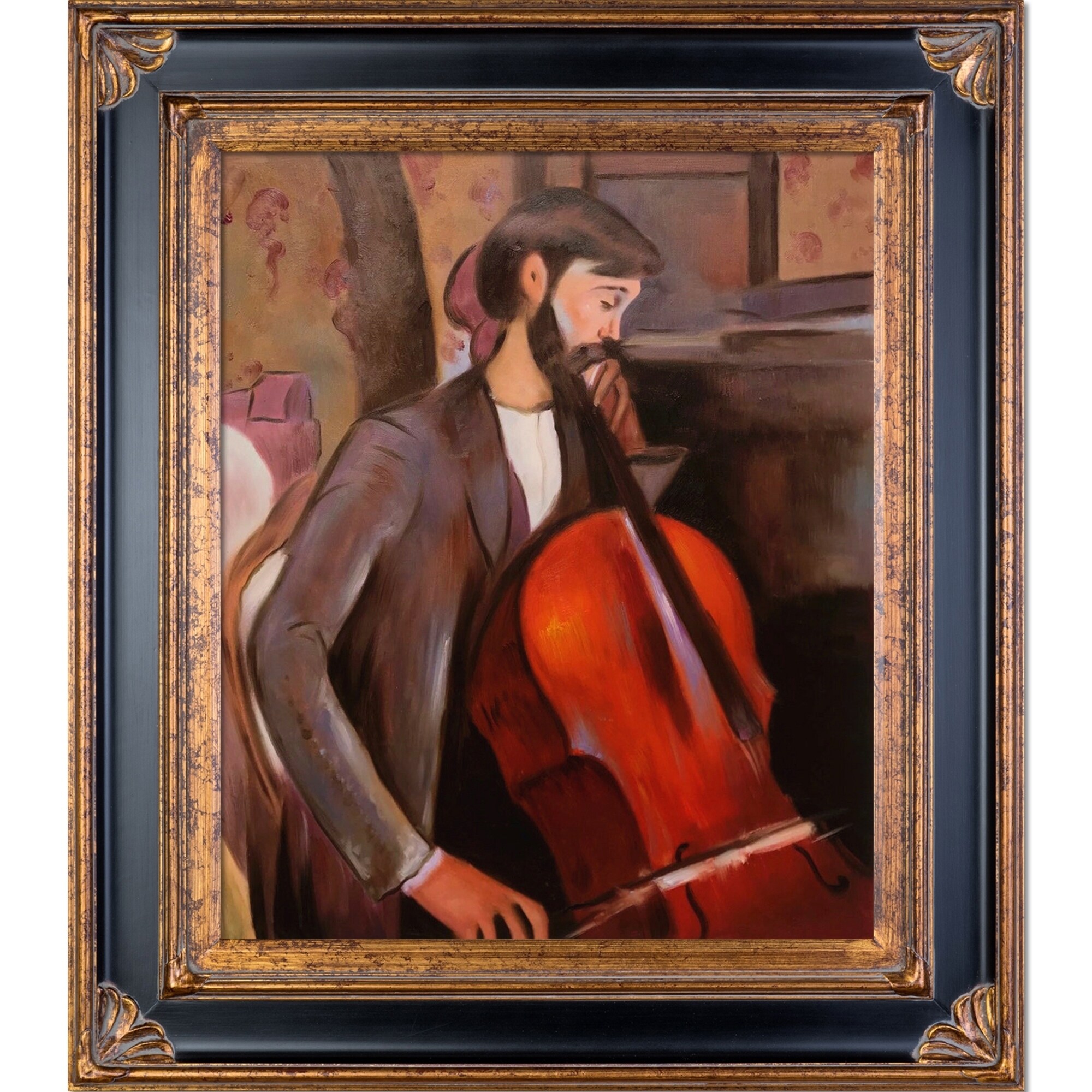 Amedeo Modigliani 'The Cellist' Hand Painted Framed Canvas Art