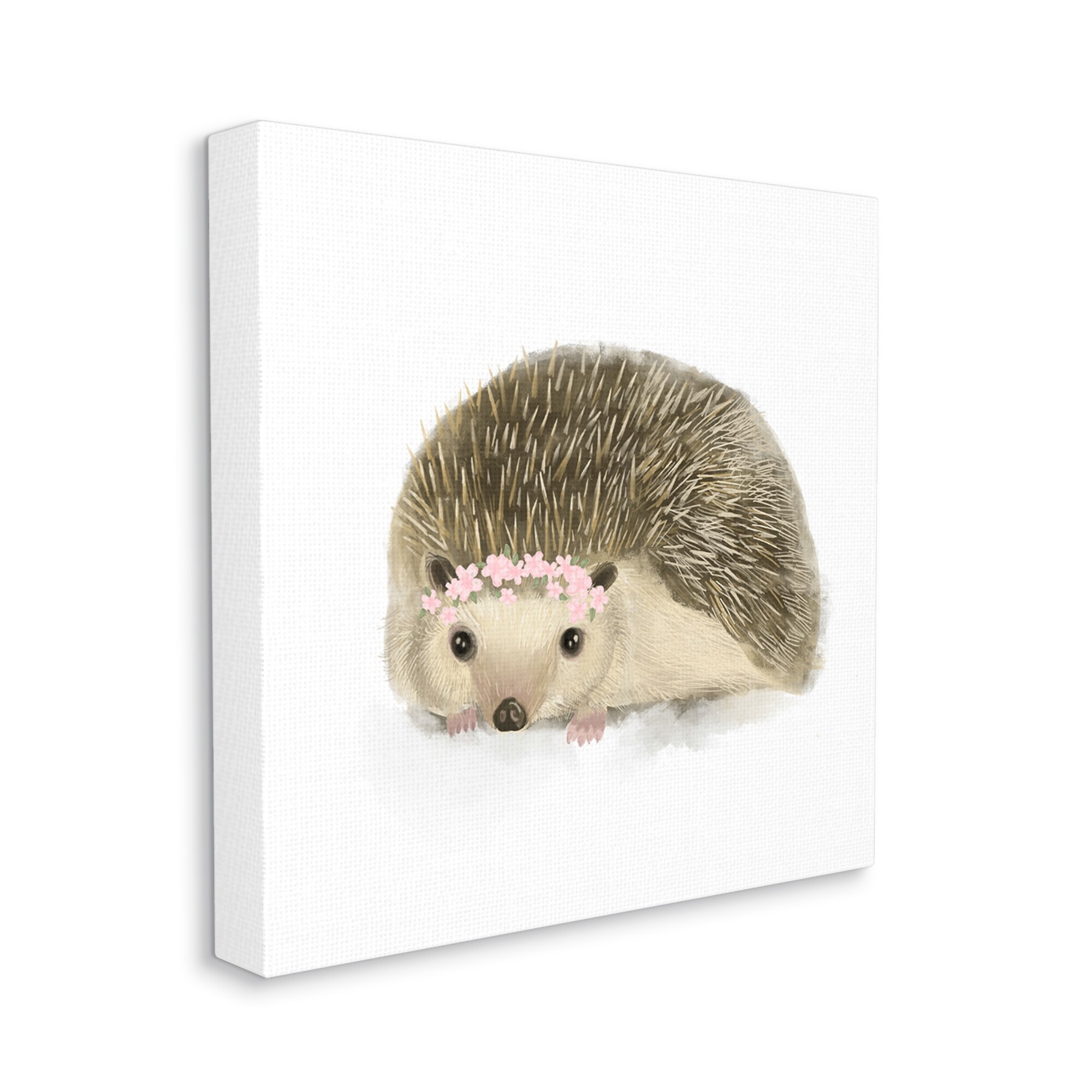 Stupell Cute Floral Crown Hedgehog Nursery Woodland Animal Canvas Wall Art