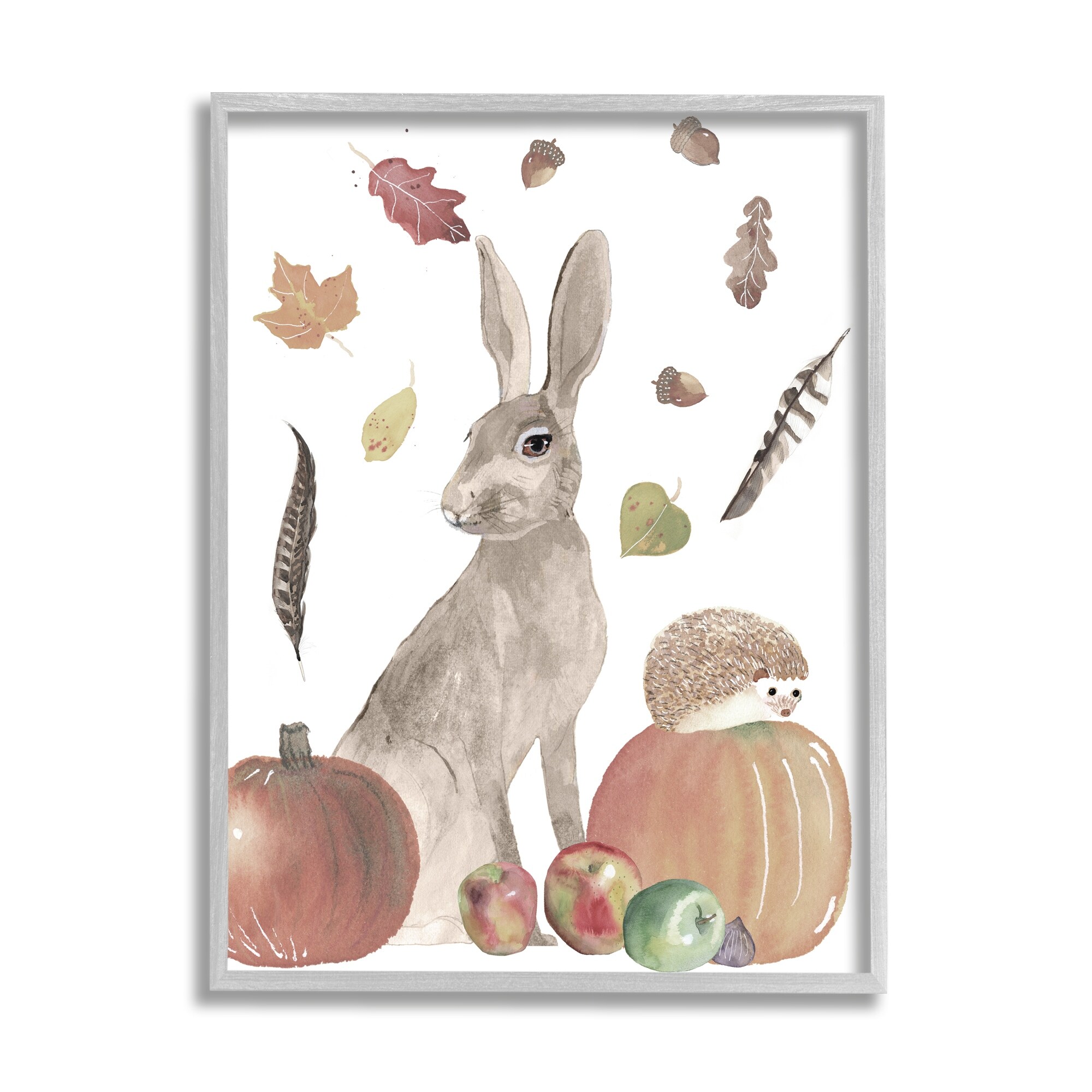 Stupell Industries Autumn Season Rabbit and Hedgehog Pumpkin Foliage Framed Wall Art - Grey