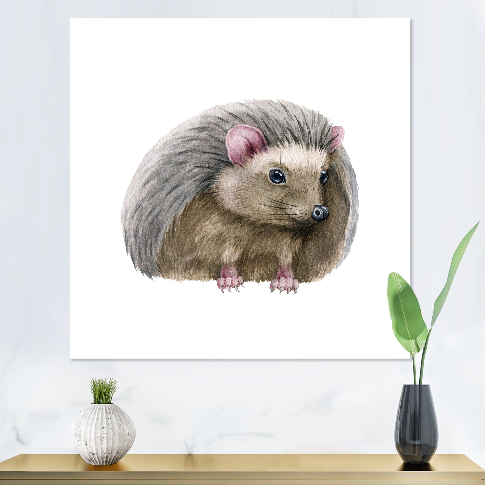 Designart 'Hedgehog Illustration Watercolor' Contemporary Animal Art Metal Wall Art