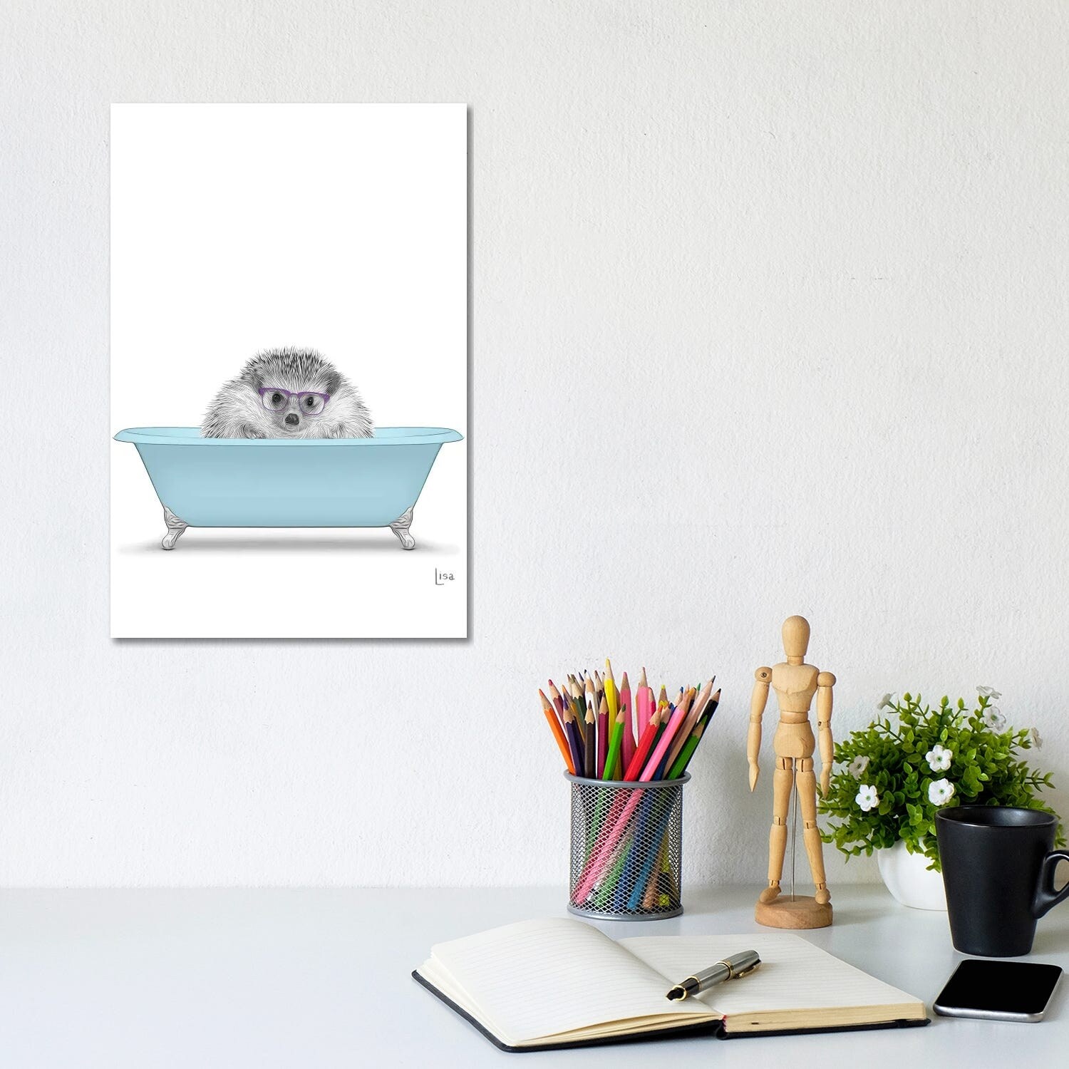iCanvas "Hedgehog In the Blue Bath" by Printable Lisa's Pets Canvas Print