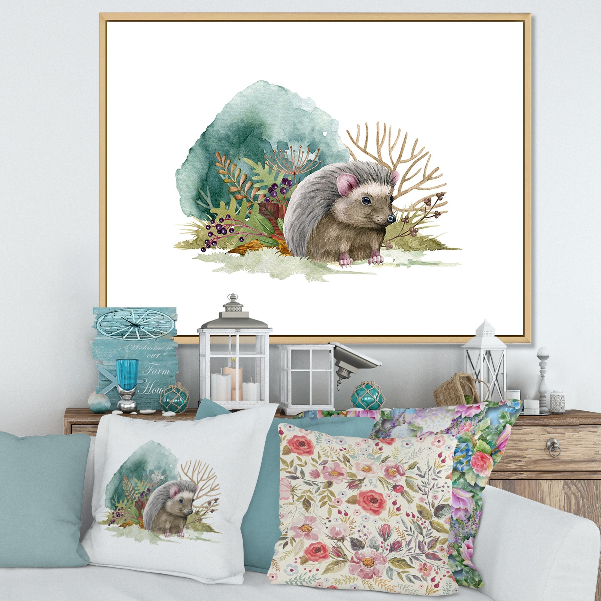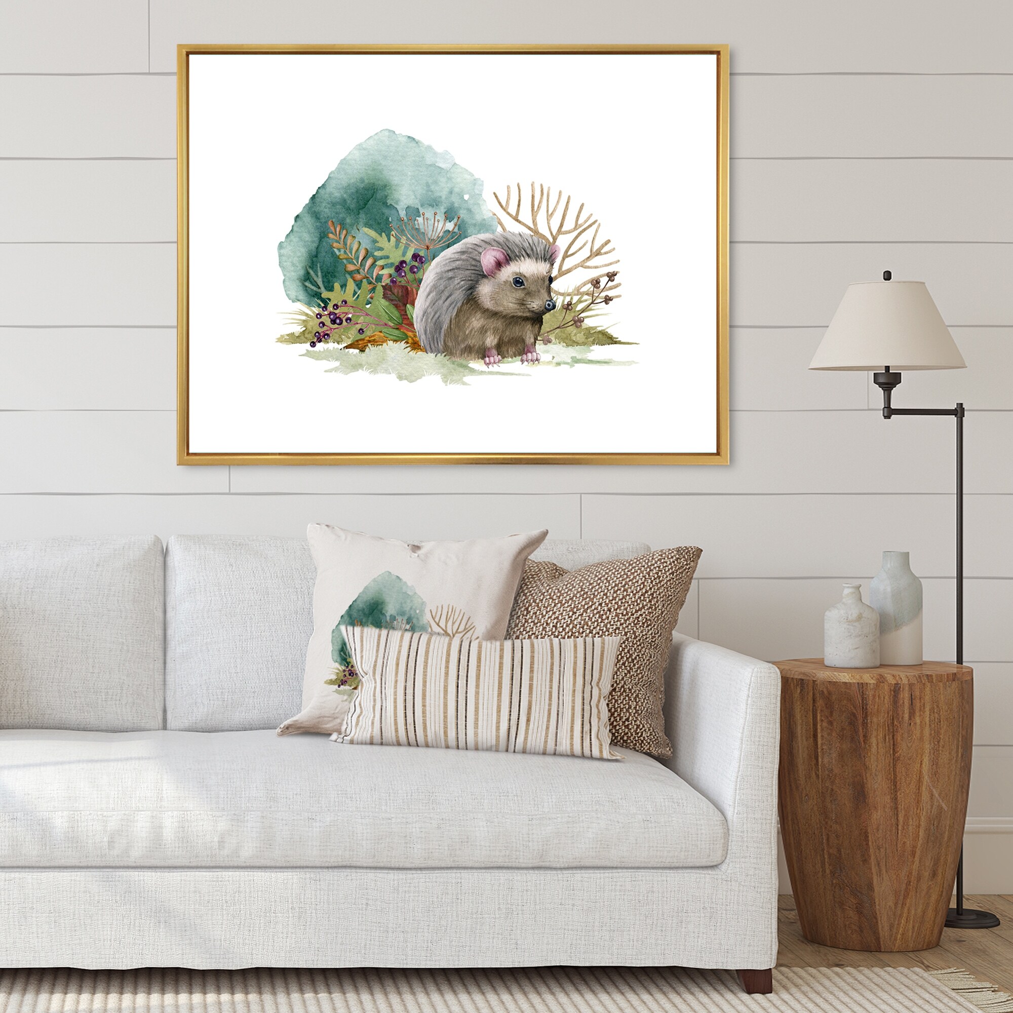 Designart "Hedgehog With Wildlife Forest And Garden Herbs" Traditional Framed Canvas Wall Art Print
