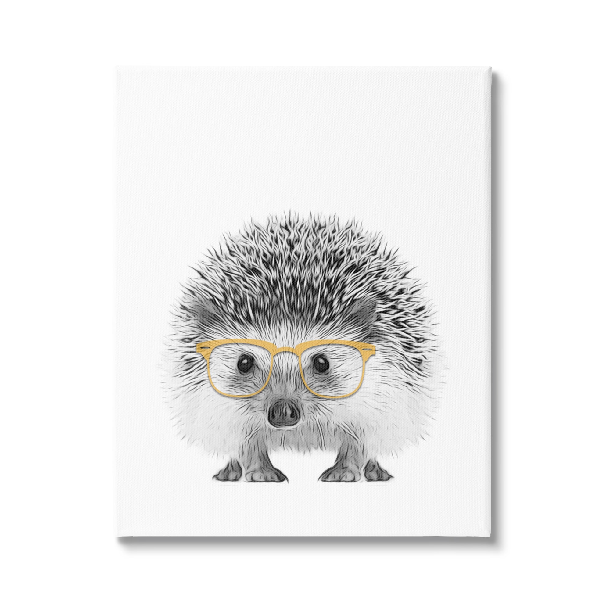 Stupell Lovable Monochrome Hedgehog Yellow Glasses Illustration Canvas Wall Art