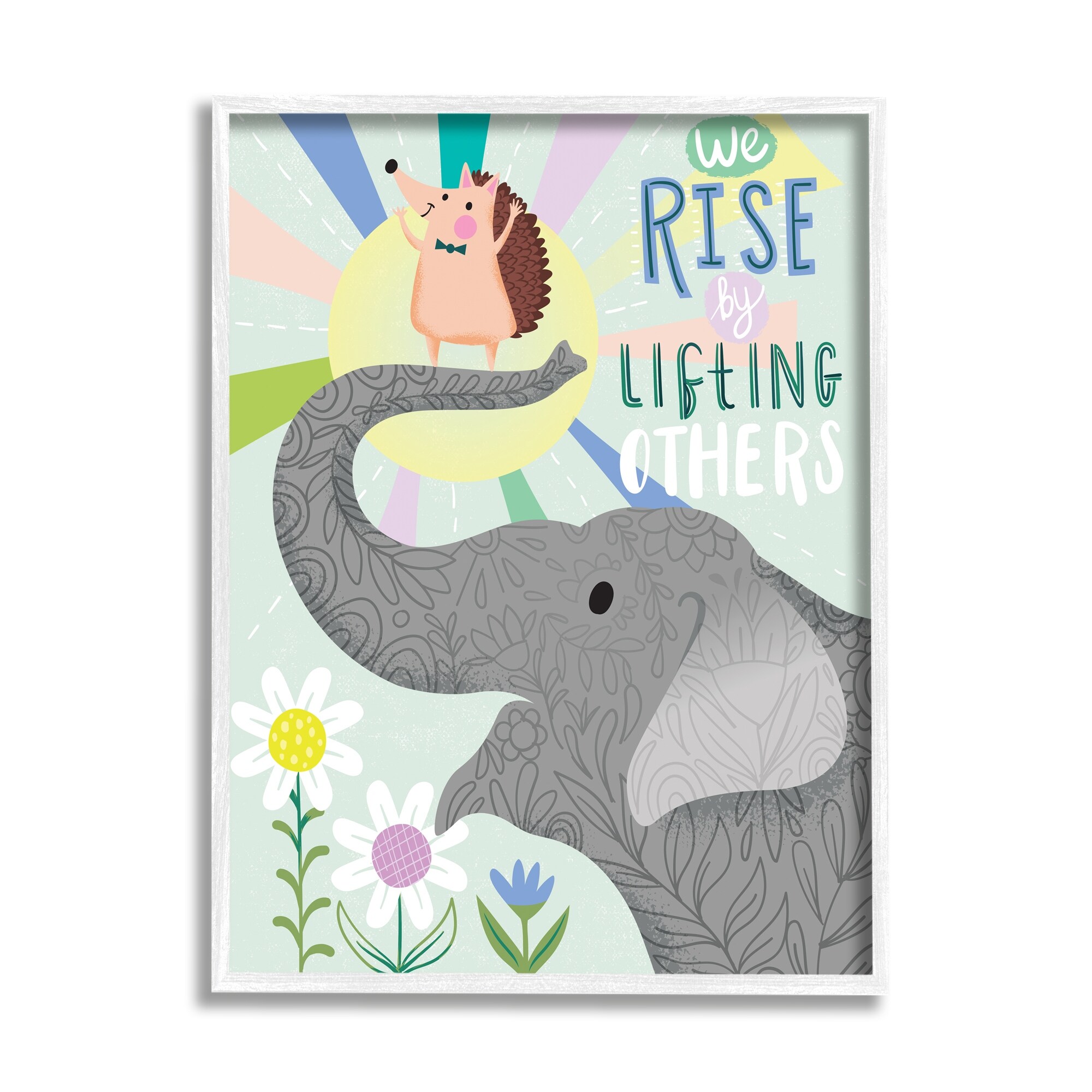 Stupell Rise By Lifting Others Sentiment Elephant Hedgehog Flowers Framed Wall Art - Green
