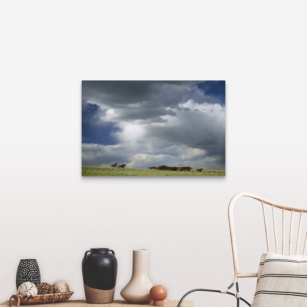 "Cowboys moving herd of horses" Canvas Wall Art