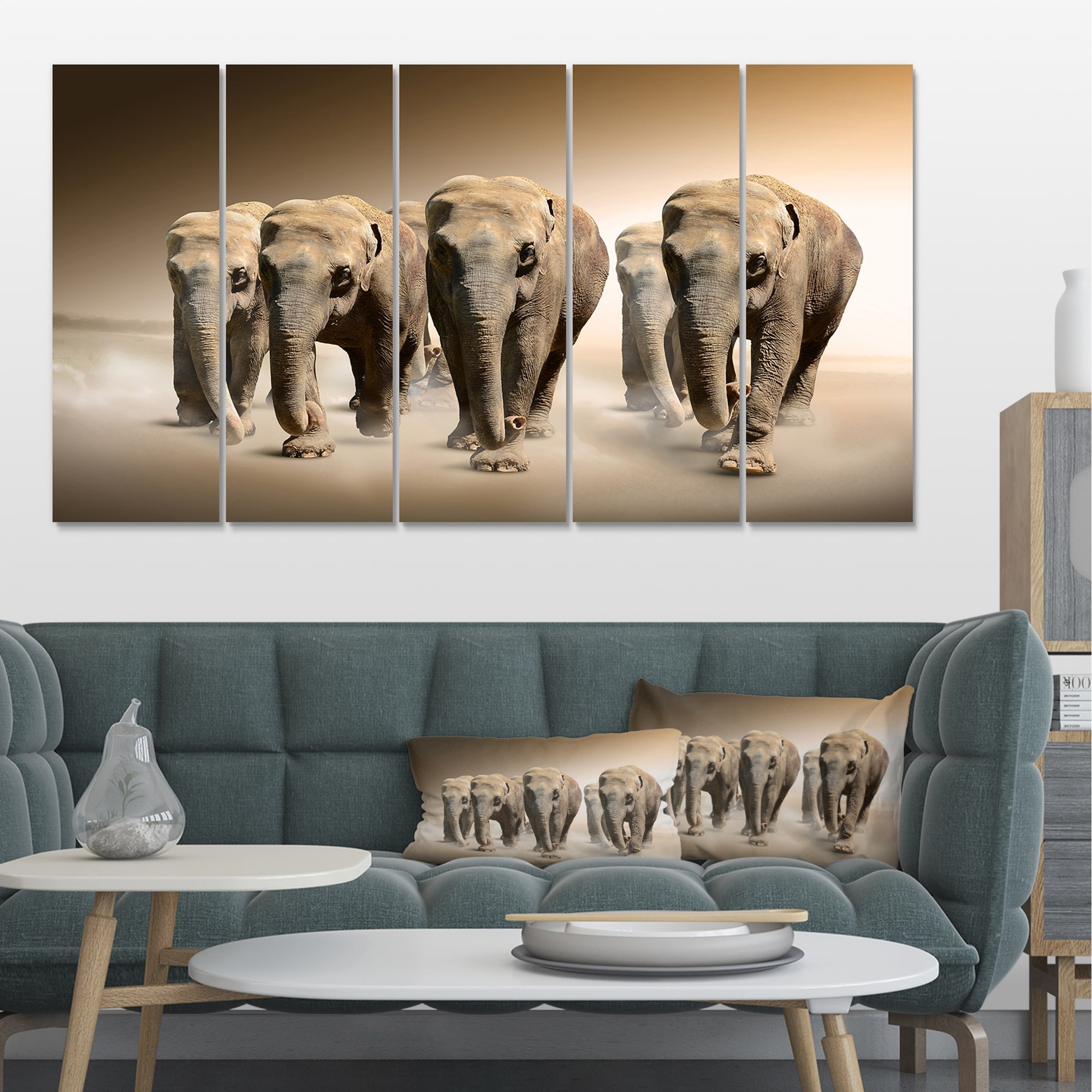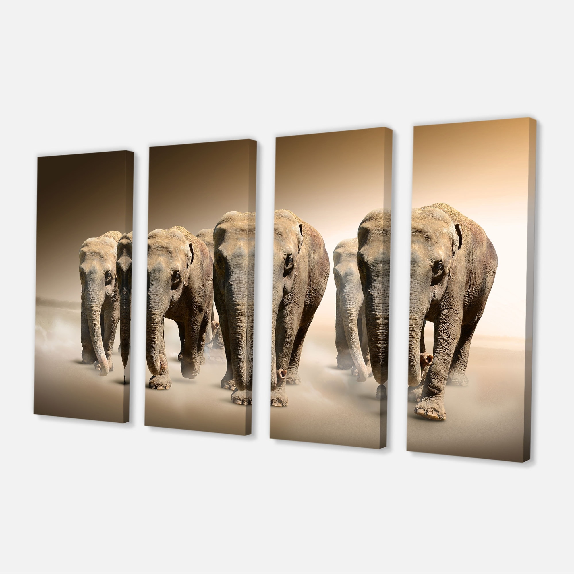 Designart "Walking Herd of Elephants" Large Animal Art on Canvas