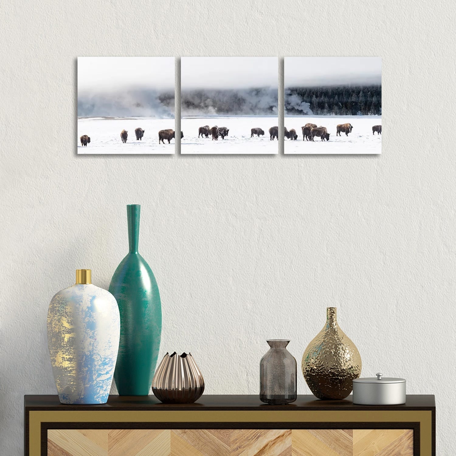 iCanvas "Bison Herd, Fountain Flats, Yellowstone National Park, Wyoming, USA" by Panoramic Images 3-Piece Canvas Wall Art Set