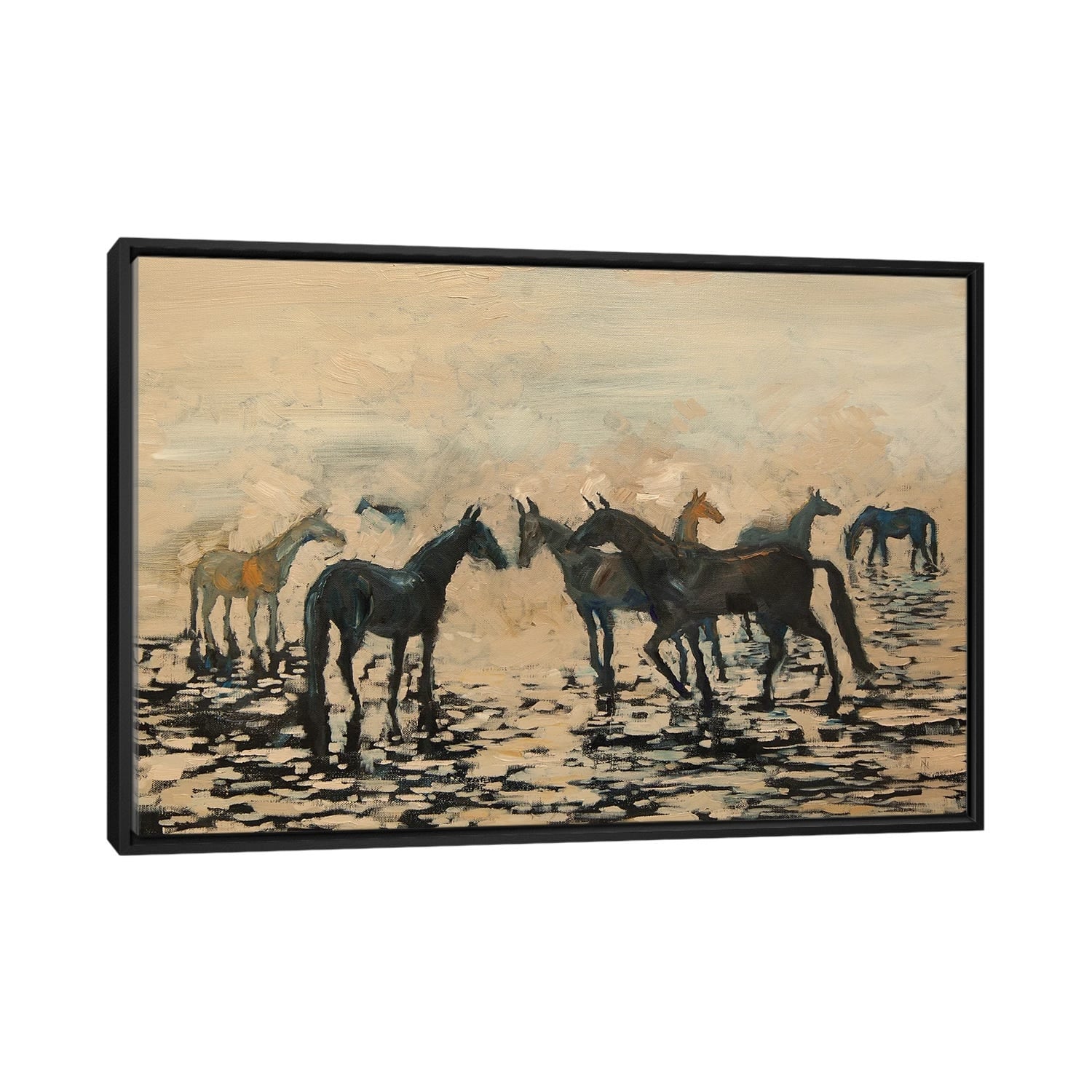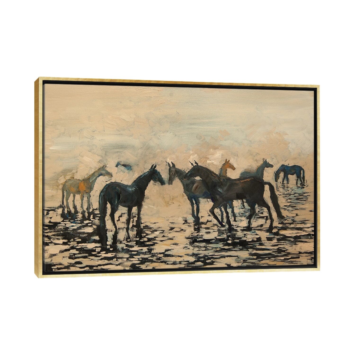 iCanvas "Herd Of Horses on the Seashore" by Tatiana Nikolaeva Framed Canvas Print