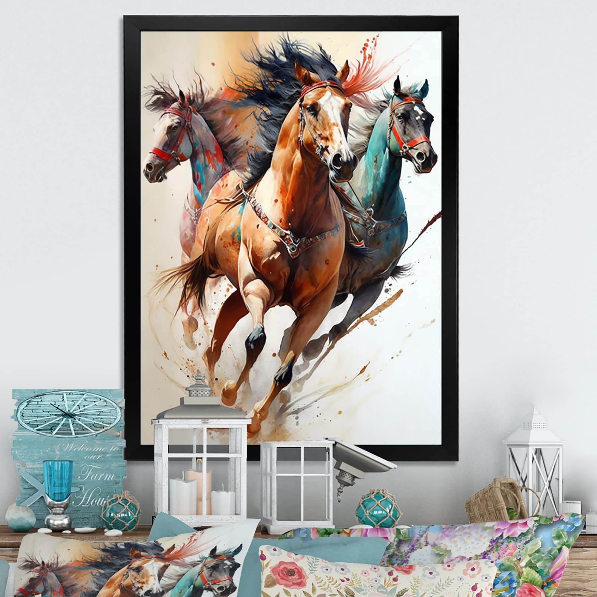Designart "Herd Of Horses Running V" Animals Framed Art Print