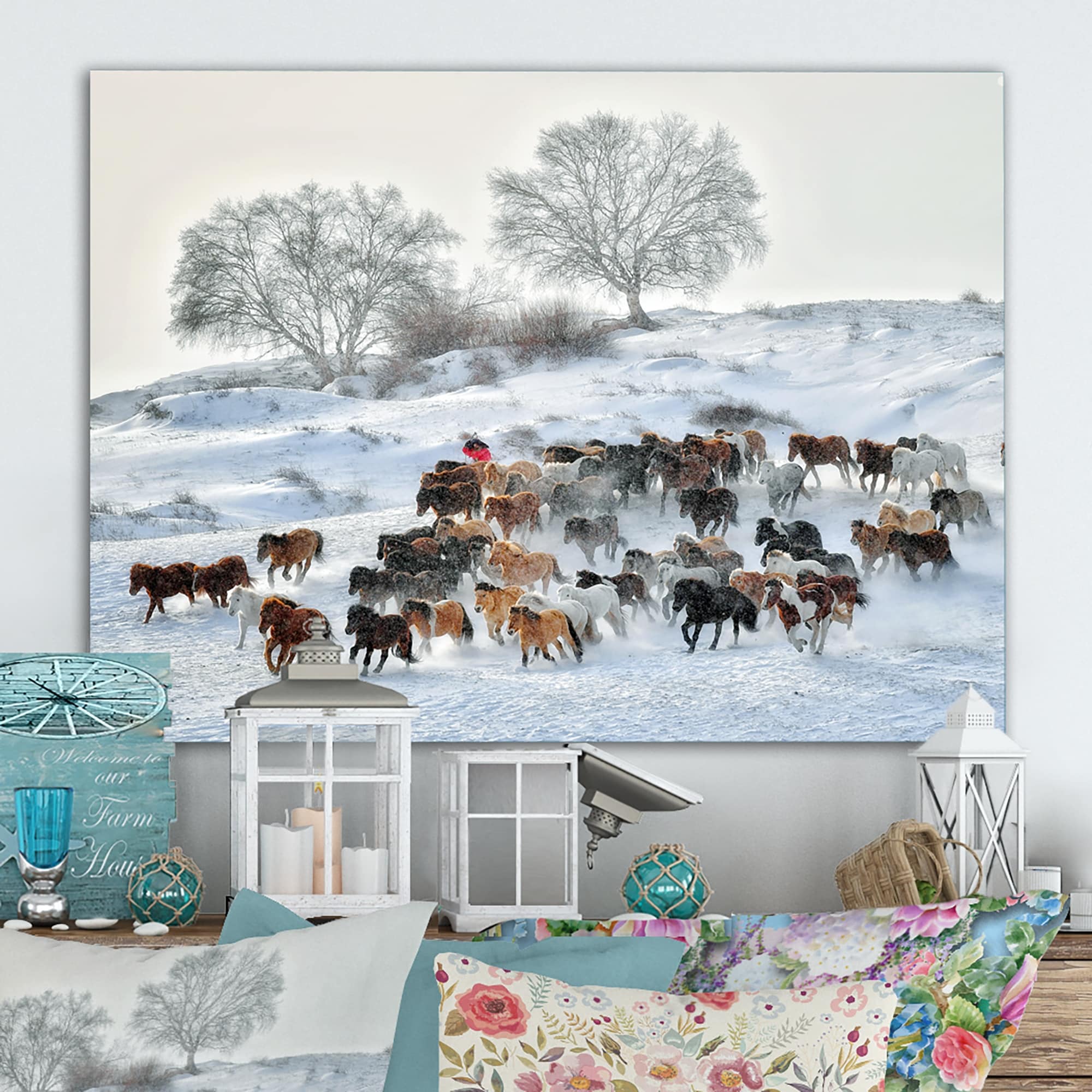 Designart "Herd Of Horses in the Snow" Farmhouse Canvas Art Print