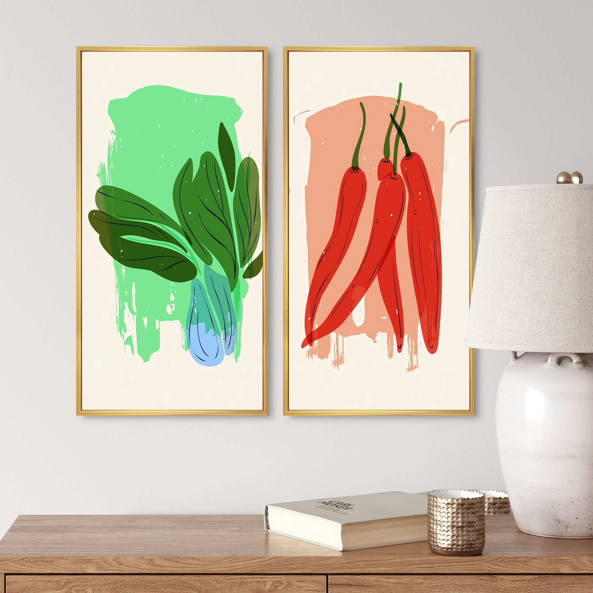 Designart "Organic Vintage Hipster Vegetables I" Cottage Framed Art Set of 2 Pieces