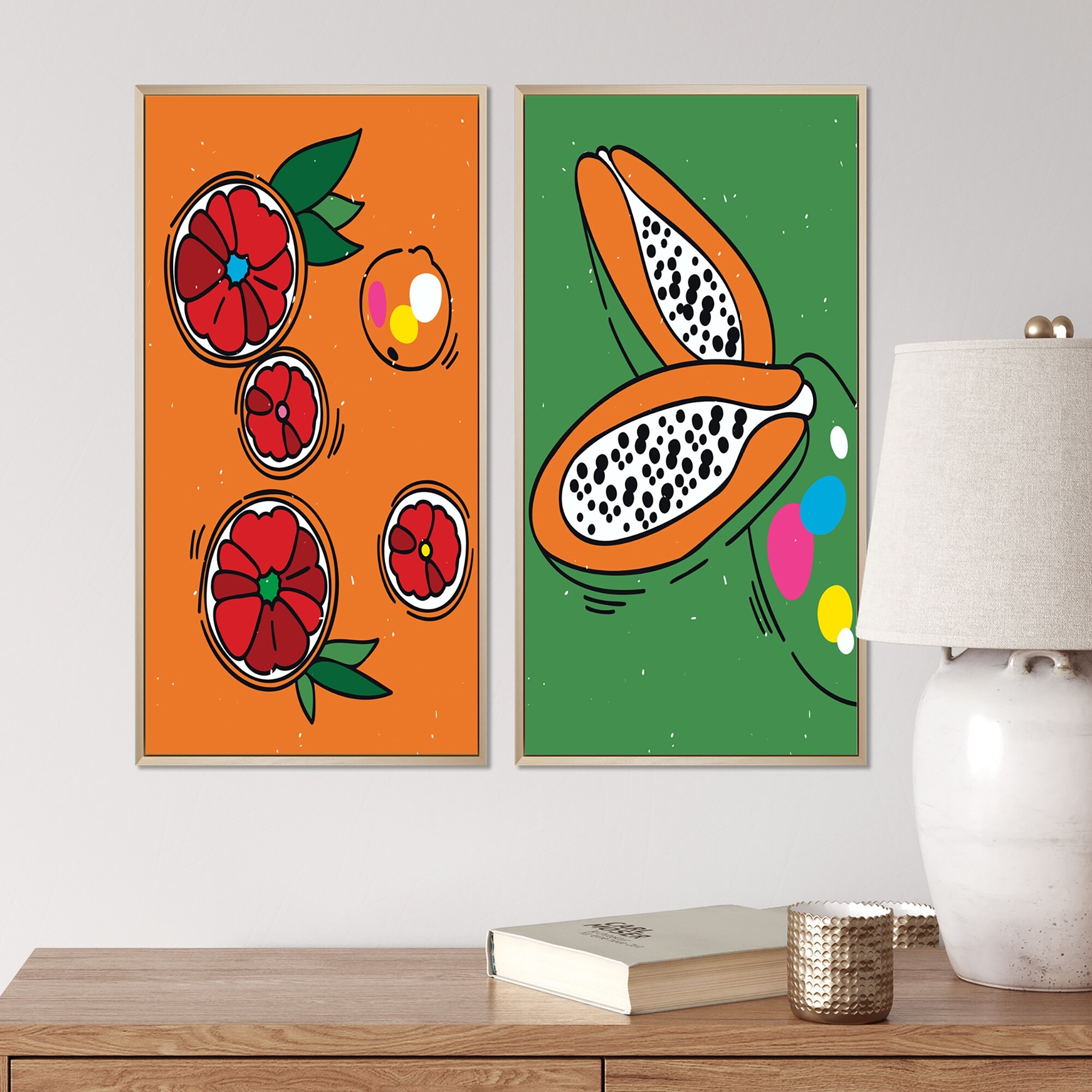 Designart "Organic Vintage Hipster Fruits II" Cottage Framed Art Set of 2 Pieces
