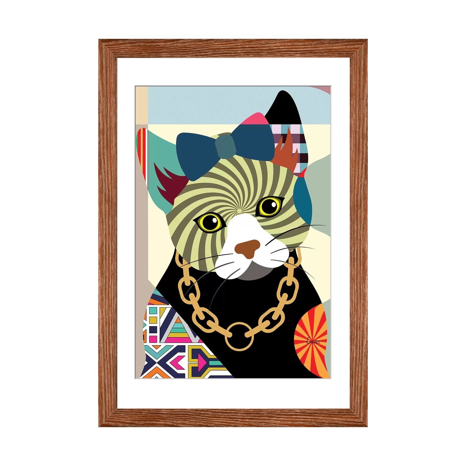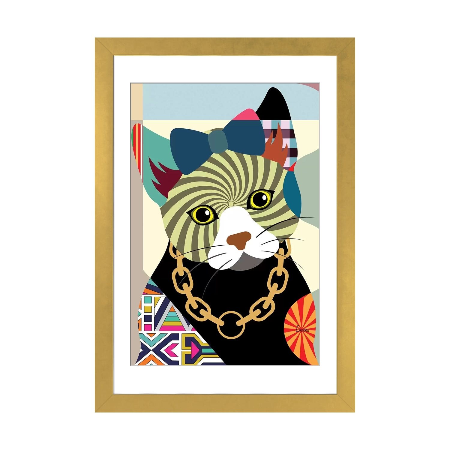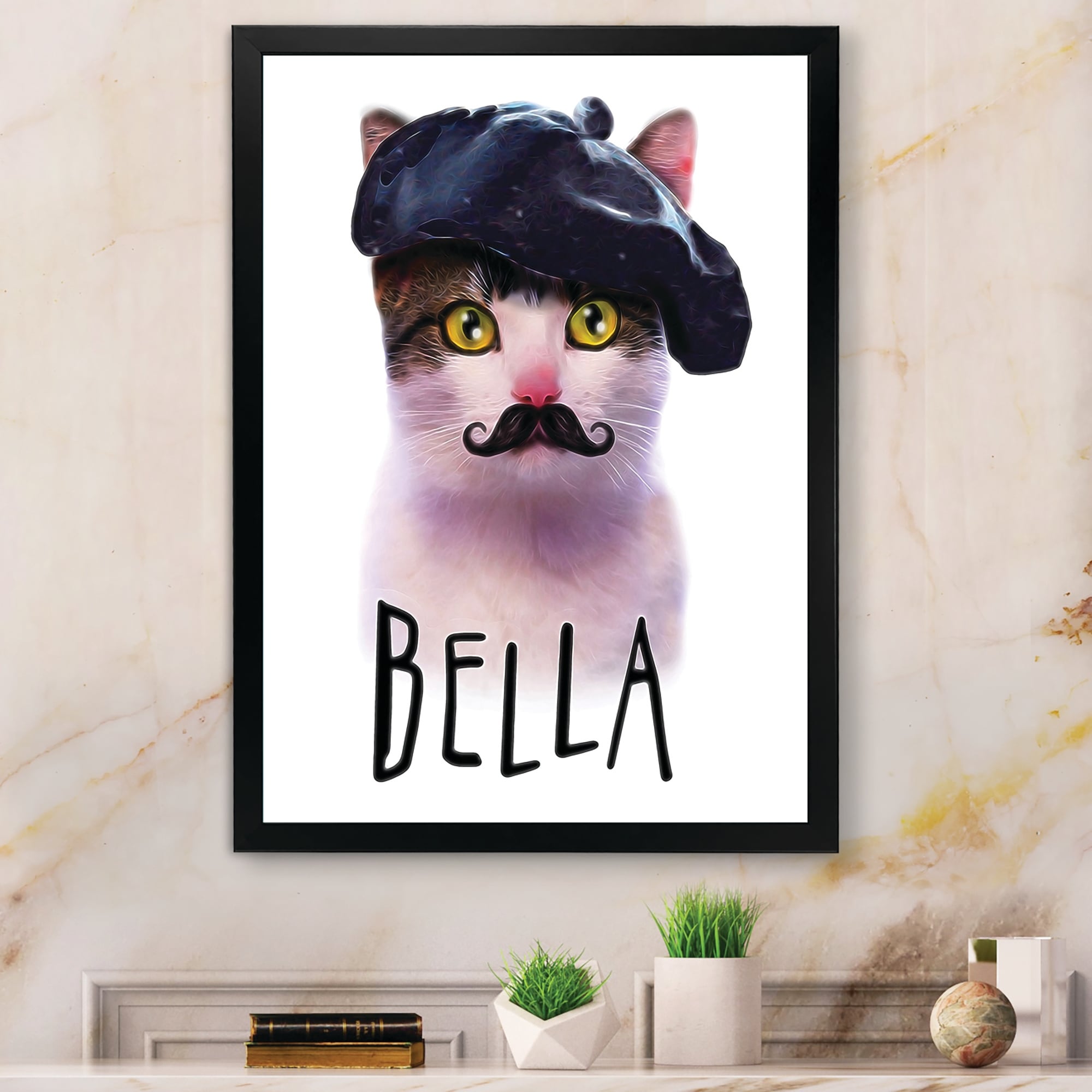 Designart "Hipster Funny Cat With Moustache" Children's Art Framed Art Print